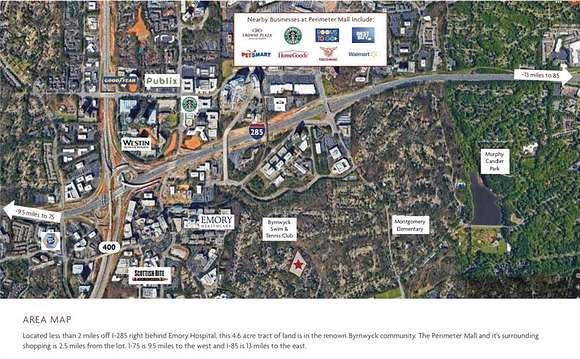 Calling all developers and luxury home builders!! Fantastic opportunity to develop on the largest lot available in Brookhaven! Located less than 2 miles off I-285 right behind Emory Hospital, this 4.6 acre tract of land in renown Byrnwyck community is waiting for that final touch! Property is currently zoned RS-100. All utilities are ran to the lot at end of Byrnwyck Pl NE. Assemblage includes 4.2 acres parcel number 18 328 01 008, and .4 acres parcel number 18 328. 01 009 to create combined plottage of 4.6 acres. Original house on property will need complete rehab or removal. Can be part of Byrnwyck Community Association with Swim/Tennis club