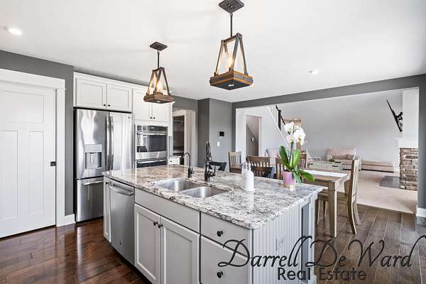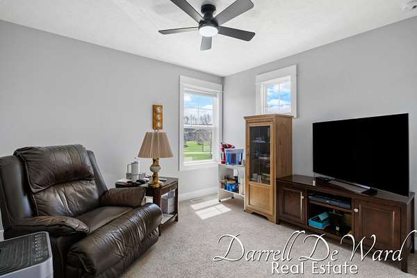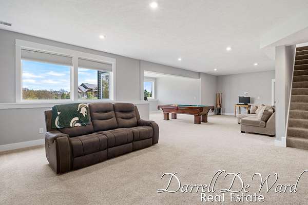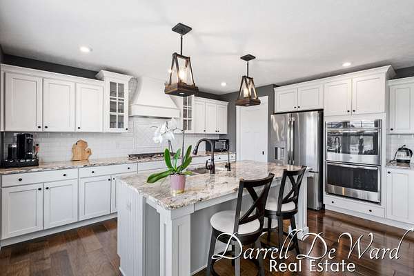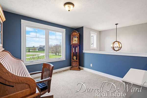Nestled on 2.5 acres in the coveted Forest Hills Eastern School District, this custom-built 2019 5-bedroom 4-bath home with 4-stall garage offers the perfect blend of luxury and peace of mind. Imagine cozy evenings by the double-sided fireplace, sun-drenched mornings in the family room, or entertaining on the maintenance-free composite deck with stunning panoramic views. The gourmet kitchen, primary suite with tiled shower and walk-in closet, laundry, and an office complete the main floor. The upper level features an open gaming/ study space, 3 more bedrooms, and a full bath. A lower level designed for recreation ensures every need is met, and also has an additional bedroom and bathroom. With a Generac whole-house backup generator, you'll have uninterrupted comfort, rain or shine. Plus, endless adventures await with proximity to Cannonsburg and various trailheads. All the amenities you'd expect, from underground sprinkling to multiple walk-in closets, mean this meticulously maintained home is ready for your immediate enjoyment. Move into this beauty right away when you close on it!