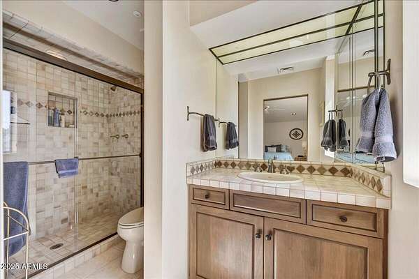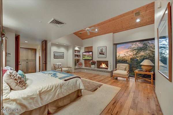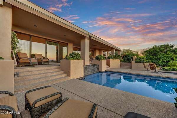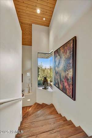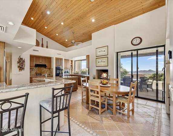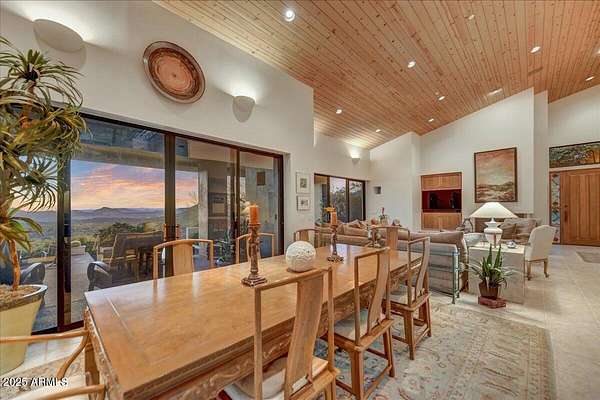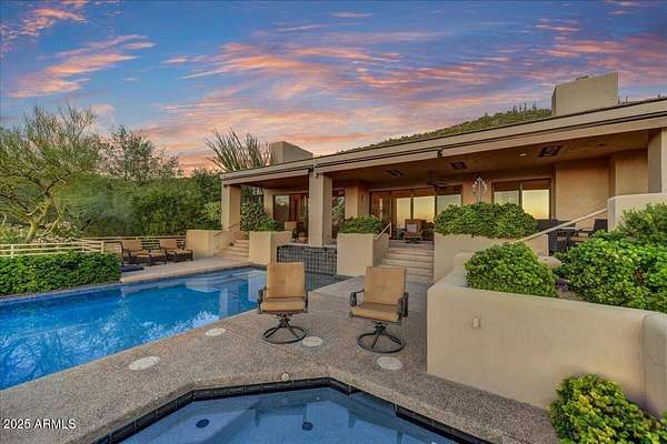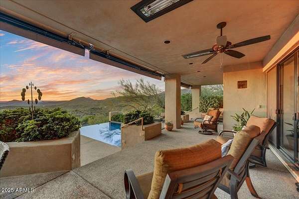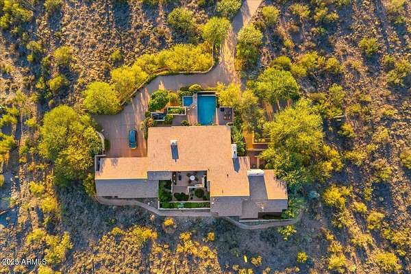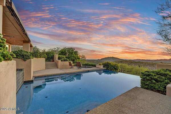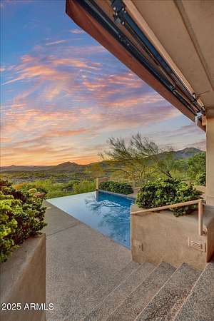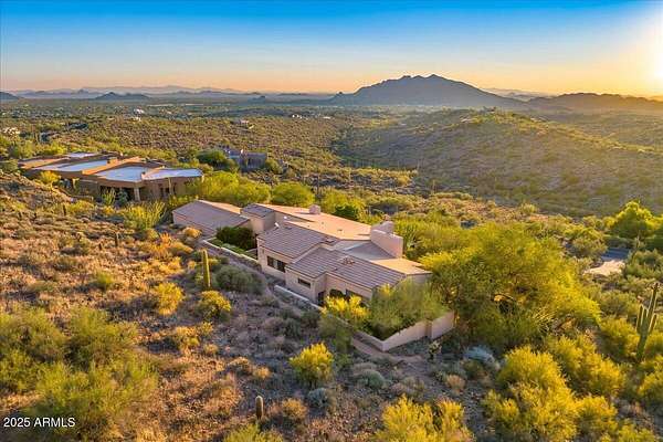 Stunning MOUNTAIN-TOP ESTATE on 6 acres in Guard Gated Carefree Ranch. Experience elevated living in this exceptional 4,242 sq ft estate nestled atop a PRIVATE six-acre parcel in prestigious Carefree Ranch. Imagine living in with unparalleled privacy and breathtaking PANORAMIC VIEWS in every direction. Step into refined elegance with flagstone and custom red oak flooring, Warm wood ceilings that bring a cozy sophistication to the kitchen and family room. Expansive windows frame sweeping valley vistas, flooding the interior with natural light. Enjoy resort-style living with an infinity-edge pool and spa, complemented by an expandable eco shade screen, and flushed ceiling heaters. A year-round enjoyment of spectacular views. A must-see home in North Scottsdale! The main level features a large guest bedroom with a full en-suite and a convenient Murphy bed for flexible space use. The second level is dedicated to the luxurious primary suite, complete with fireplace, mountain views, en-suite, and den/ exercise room. The third level boasts a reading nook, and two generously sized bedrooms, each with its own en-suite bathroom. This estate combines beauty, privacy and timeless elegance-perfect for those seeking tranquility and sophistication in the high desert.
