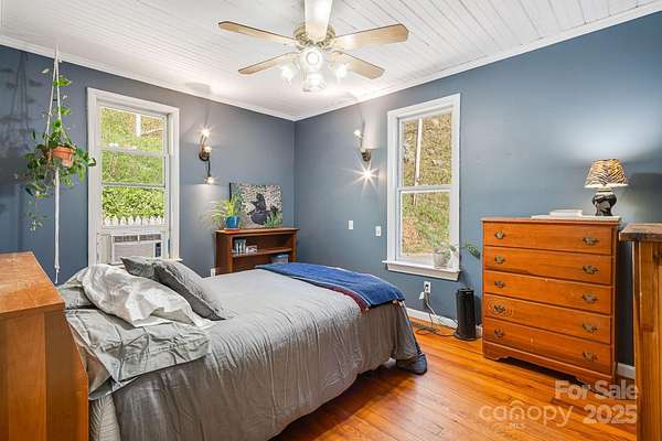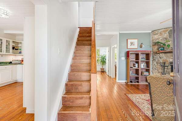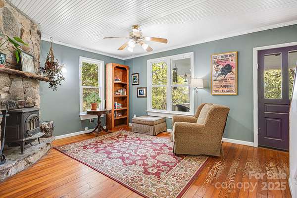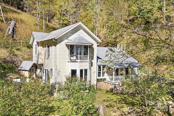 Discover this idyllic 2-bedroom, 2-bath farmhouse nestled on 21 South facing acres in the heart of the Blue Ridge Mountains, just 20 minutes from the vibrant town of Marshall. This mini-farm offers a peaceful retreat at the end of the road for ultimate privacy. Mountain views from the porch, featuring a barn, chicken coop, and a serene spring-fed koi pond. Enjoy established perennial gardens and lush landscaping throughout the property. The spacious owner's suite is a true escape, complete with a cozy sitting room, dedicated office space, and a Romeo & Juliet balcony perfect for soaking up morning sunrises. Outside, relax with your coffee by the koi pond or explore your private trails and green spaces. Experience the best of country living with easy access to local rivers, outdoor recreation, and the charm of downtown Marshall.