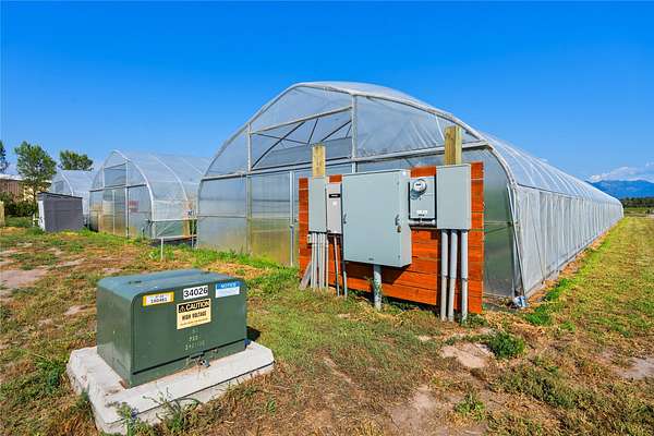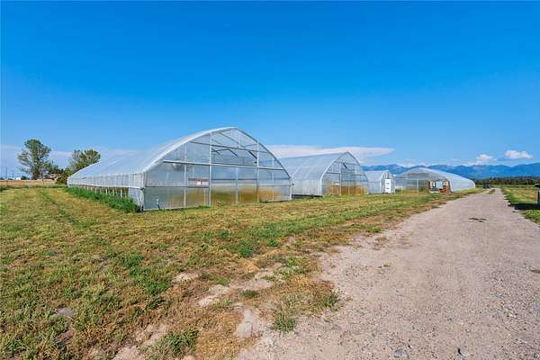 50 Acres on Lower Valley Road w/ 6 Greenhouses & a Yurt! Embrace self-sufficiency & rural tranquility on this expansive property.With 360 degrees mountain views, Flathead Lake to the south & an idyllic level landscape, this is a rare opportunity to own versatile land with outstanding agricultural & recreational potential. Greenhouses are climate controlled, perfect for wholesale, market gardening or seed starting.The Yurt offers 2 bedrooms, dining/living space plus outdoor kitchen & laundry/shower room, perfect to live in while building your dream home or employee housing. The property is sub-irrigated, ideal for hay or crops. Grow food, start a hobby farm, or create a private retreat-this land is a blank canvas. A sizeable portion lies in the 100-year floodplain, suited for conservation or ag uses, while the area near Lower Valley Rd is outside the floodplain, offering potential for residential or commercial projects. Please see documents for septic site evaluation from Flathead County. Property has 5 fenced pastures for livestock. Posts for additional barn included, but hoop frame is excluded. Pasture corner braces made tall to allow for future high fence to keep wildlife out for crop protection. Seller willing to also sell package of 20 cows separte from property sale.