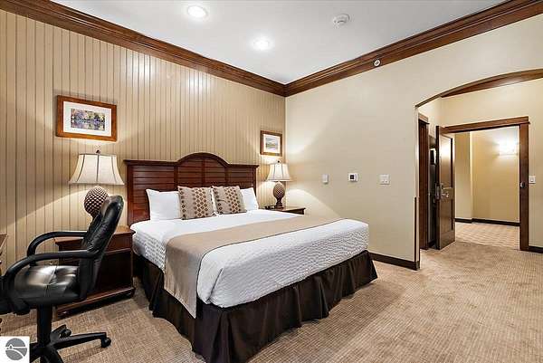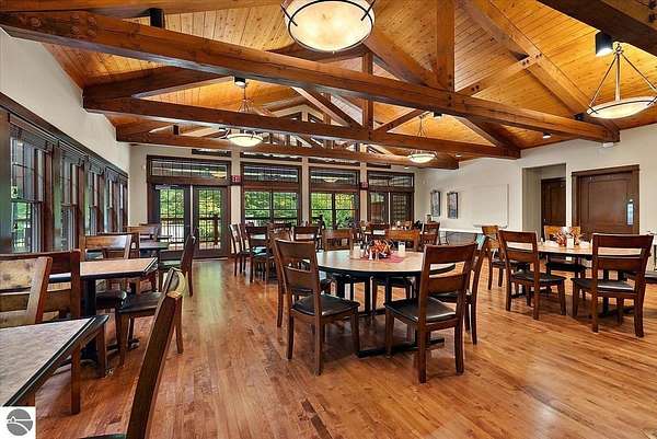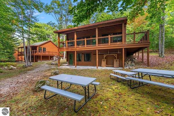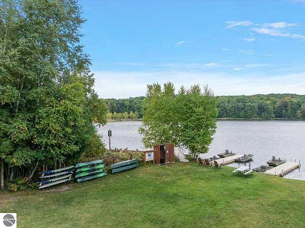 Welcome to Rockwell Lake Lodge, a rare opportunity to own nearly 670 acres of pristine Northern Michigan wilderness with a private 40-acre lake at its heart. This secluded retreat combines unmatched natural beauty with extensive improvements, offering endless recreational and lifestyle possibilities. The land is a diverse mix of rolling hills, mature hardwoods, planted pines, wetlands, and elevated ridges overlooking Rockwell Lake, home to largemouth bass, bluegill, and walleye. Abundant wildlife thrives across the property, including whitetail deer, turkey, black bear, and grouse, making it a true sportsman's paradise. The centerpiece is the 11,800+ sq. ft. Rockwell Lodge, built in 2007, featuring 10 private hotel-style rooms with en-suite baths, fireplaces, and balconies, along with a grand lobby, conference and dining areas, and a full commercial kitchen. Additional lodging includes four two-story cabins (2007-08) with bunk space, classrooms, and apartments, plus a renovated 4-bedroom, 2-bath residence that was recently updated in 2021. A 2,400 sq. ft. heated maintenance building with carport and supporting outbuildings provide ample storage and operational support. Property infrastructure is extensive: propane heat, multiple generators (up to 150 kW for full lodge backup), fiber internet, security system with cameras, and private well and septic systems. Event capacity includes well over 100 guests indoors or outdoors, with a lakeside patio, firepit, trails, docks, and parking for 25+ vehicles. The property is perimeter fenced and includes forestry resources, and over 10 miles of mapped trails. With nearly every summer weekend booked for weddings and retreats, Rockwell Lodge is proven for hospitality yet versatile enough for use as a private estate, corporate retreat, hunting and fishing lodge, or long-term conservation investment.