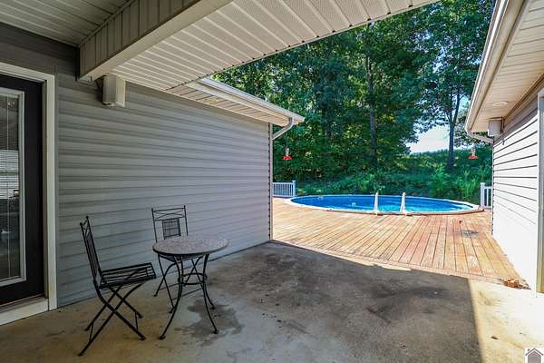 Country Living with Modern Comforts! This 3 bedroom, 2 bathroom home sits on just under 9 acres and offers over 2,300 sqft of living space with soaring 12' vaulted ceilings and beautiful wood floors throughout. The split floorplan features a spacious primary suite with a huge walk-in closet, ensuite bath, and convenient access to the laundry room. A bright living room with a fireplace and built-in shelving flows into the modern kitchen complete with stainless appliances, a large island, and pantry. A bonus family room at the back of the home opens to the pool deck, where a half bath adds convenience for entertaining. Outside, enjoy a 2-car attached garage and a 60x40 workshop, making this property the perfect blend of functionality, comfort, and country charm.