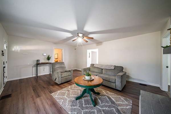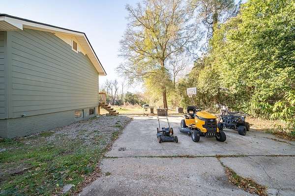 A rare find in the city-two private, fully fenced acres offering space, comfort, and endless possibilities. This beautifully designed 4-bedroom, 2.5-bath home features a desirable split floor plan and an abundance of room to live, relax, and entertain. Step outside and enjoy the best of outdoor living with room to run, play, and entertain. A concrete pad is perfect for playing basketball or recreation, and a dedicated area is already built to accommodate an above-ground pool. Additional storage is available in the crawlspace and outbuilding, and the outdoor patio offers an ideal setting for gatherings or quiet evenings. Inside, you'll find granite countertops, a spacious family room anchored by a cozy fireplace, and a private den complete with a wine bar-perfect for entertaining or unwinding at the end of the day. The tiled showers add a touch of luxury, while one of the secondary bedroom even includes its own private half bath, ideal for guests or multigenerational living. Start your mornings or wind down your evenings on the welcoming front porch, sipping your favorite drink and enjoying the peaceful surroundings-all while being conveniently located in the city. Privacy, space, and convenience-this home truly has it all.