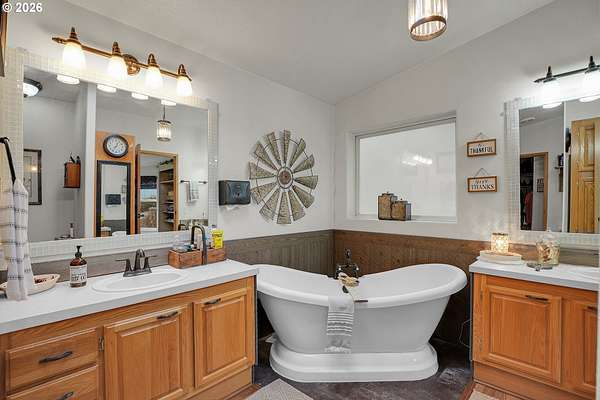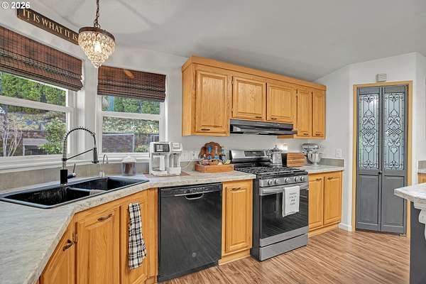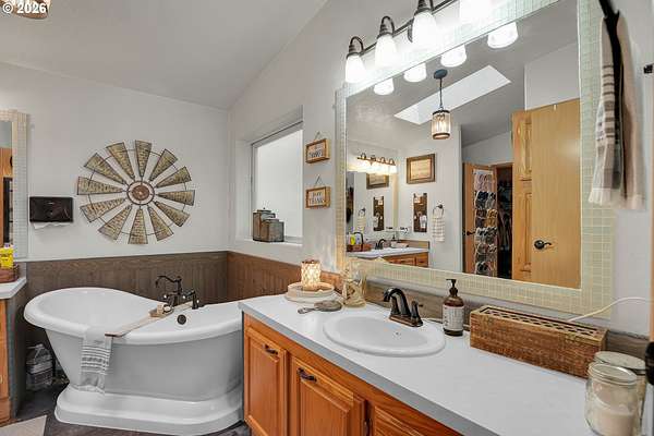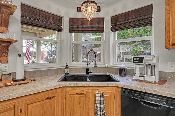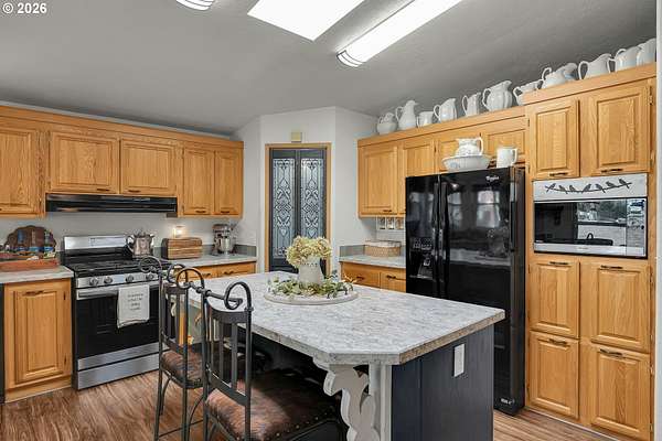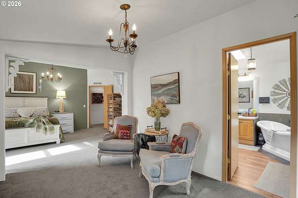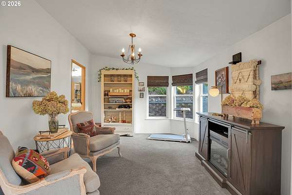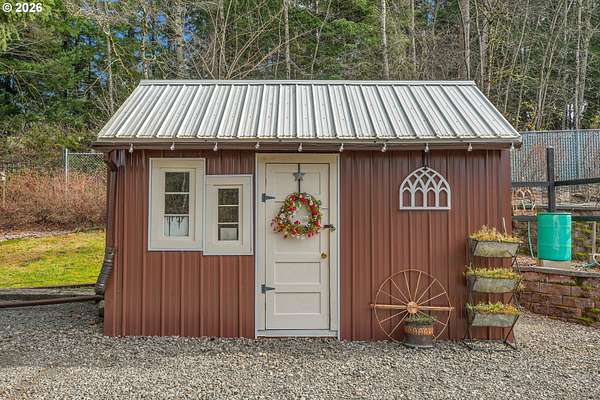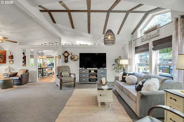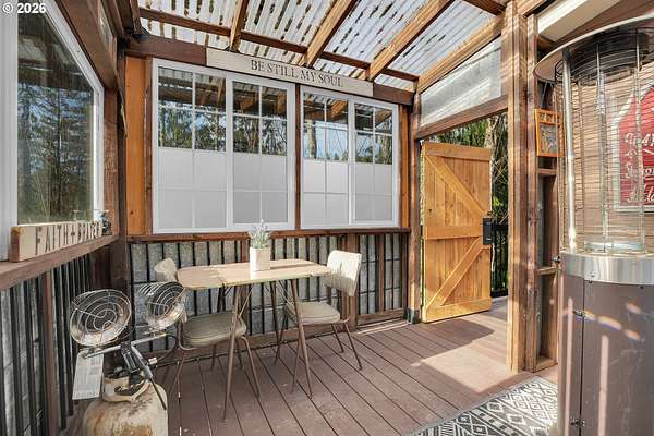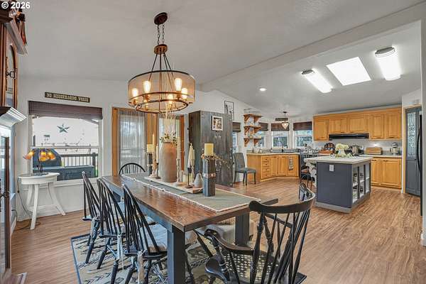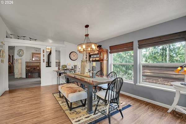 Set on nearly 4 acres, this beautifully maintained 3-bedroom, 2-bath manufactured home offers over 2000 square feet of comfortable living space. Upon your entry, the expansive great room includes a large kitchen with generous cabinet space, pantry, island, and adjoining dining area - perfect for hosting gatherings. The oversized living room offers vaulted ceilings, large windows, two sitting areas, and a cozy woodstove, creating a warm and welcoming atmosphere.Retreat to the generously sized primary suite, complete with a separate sitting area, walk-in closet, bay windows and a private bath with double sinks and soaking tub. Two additional bedrooms and a full bath provide flexibility for guests, home office, or hobbies.Outside features multiple outdoor spaces to enjoy, including a covered front porch, an open side deck ideal for stargazing, relaxing by the fire, or game nights, and a covered, enclosed area with hot tub for year-round enjoyment. The property also features wonderful gardening areas, room for animals, and expansive open space to make your own.A large shop with two roll-up garage doors offers exceptional storage and workspace, along with ample parking for RVs, boats, and toys. Additional upgrades include solar panels on the garage for energy efficiency and a newer metal roof for long-term durability.This private retreat combines comfort, functionality, and outdoor lifestyle-just minutes from Estacada amenities while offering the tranquility of country living.