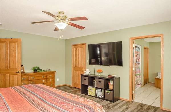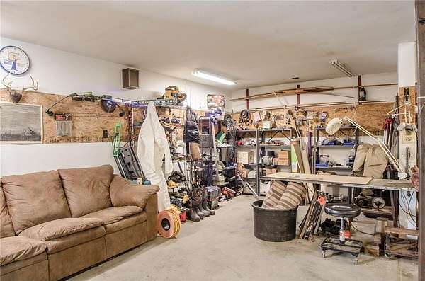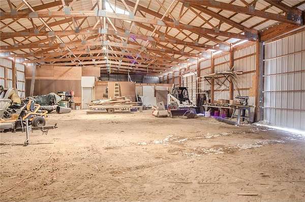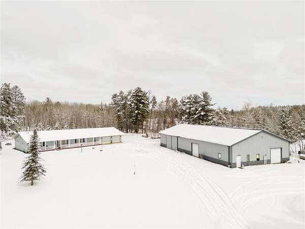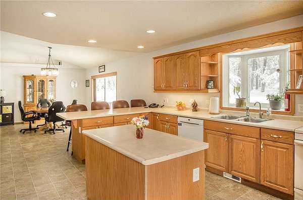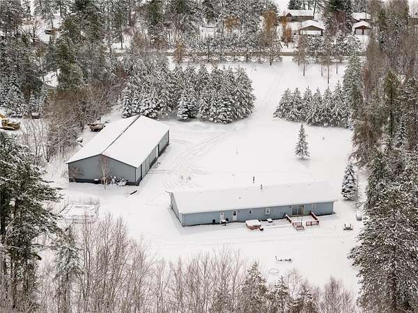 Set on an incredible 3.8 acres of private land, this stunning property offers nearly 4,000 finished square feet of space, comfort, and versatility. The main level welcomes you with a large living room featuring a vaulted ceiling that flows seamlessly into the dining area and spacious kitchen. Designed for both function and style, the kitchen offers exceptional counter space, abundant cabinetry, and a generous pantry. The main level features two bedrooms, a full bath, and a private primary suite with a walk-in closet and en suite bath. Enjoy true one-level living with main-level laundry, wheelchair accessibility throughout the main level, and thoughtfully installed grab bars for added convenience and safety. The lower level expands your living space with a large family room, additional storage, and flexible areas ideal for a pool table, games, or home gym. Two oversized bedrooms and another bathroom complete the lower level. The heated, oversized three-car garage includes a floor drain and a side service door for easy access to lawn equipment and recreational vehicles. The impressive pole barn provides ample space for boats, ATVs, and snowmobiles, plus a workshop and a finished suite with heat, A/C, and a private ¾ bath—perfect for guests or hobbies.