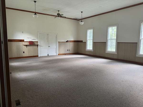 RARE OPPORTUNITY ON THE RIVER + OVER 2 ACRES! This estimated 3,500+- sq ft church sits on over 2 scenic acres along the river, offering peaceful views and endless potential. The spacious interior provides ample room for gatherings, events, or future reimagining. With generous parking and beautiful natural surroundings, this property is ideal for continued ministry use, community space, personal home or redevelopment. Unique properties like this don't come along often!