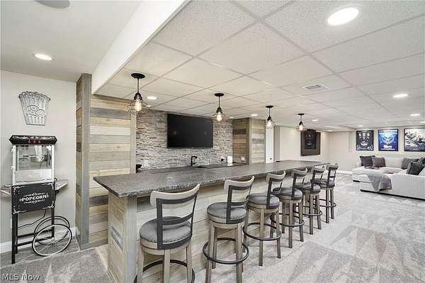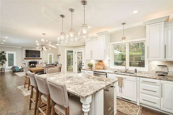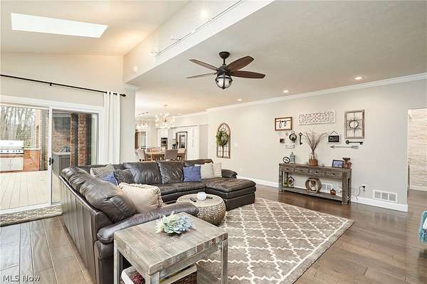 Welcome to this COMPLETELY renovated 4 BD/4.5 BA home located in the Crystal Shores development within the top-rated Revere School District. This exceptional home offers both luxury and functionality, beginning with a dramatic two-story foyer flanked by a private office & formal living room with FP, which flows into the formal dining room. The brand-new chef's kitchen is a true showstopper, featuring a large center island, top-of-the-line appliances including 3 ovens, and an open-concept design that connects effortlessly to the inviting family room with FP. A four-seasons sunroom, with a shared see-through FP and direct access to the backyard, provides the perfect space to relax year-round. Designed for indoor & outdoor entertaining, the home offers multiple access points to the stunning outdoor living area, including a French door from the kitchen & sliders from both the family room & sunroom. Outside, you'll find a truly unmatched setup featuring a built-in grill, custom pizza oven, fire pit, covered seating area, & multiple gathering spaces. Just off the family room, a hidden "speakeasy" creates a unique entertaining retreat with a beverage sink & 2 beverage/wine refrigerators. A half bath & laundry room complete the main level. Upstairs, the home features 4 spacious BDs and 3 full BA, including a luxurious primary suite w/2 walk-in closets and a fully renovated spa-like bathroom. The finished lower level adds even more living space with wet bar, media area, workout room, recreation space, and an additional full bath. Additional highlights include access to Crystal Lake where residents can enjoy fishing & non-motorized boating. Recent improvements include roof (approx 10 yrs, hot water tanks (2019 & 2020), new first-floor windows, and extensive interior & exterior updates, including hardwood floors, appliances, paint, lighting, landscaping, and hardscaping with custom outdoor features. This one-of-a-kind home truly has it all. Schedule your private showing today!