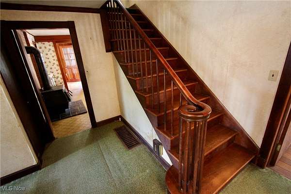 Welcome to 3949 Remsen Road, a peaceful retreat nestled just 10 minutes from Medina Square in beautiful Medina County. This charming 3-bedroom, 1-bathroom home sits on nearly 3.5 acres of lush land, offering plenty of space and potential for your dream property. As you arrive, you'll notice a lovely setting all around that will bring peace to your heart. Step inside to a spacious living area featuring built-in bookshelves and a cozy fireplace, perfect for relaxing evenings. The welcoming hallway leads to a charming kitchen equipped with a classic wood-burning stove, while the large dining room, surrounded by windows, fills with natural light-ideal for family meals and gatherings. Beautiful woodwork throughout the home adds warmth and character, including an all-wood staircase that ascends to two additional bedrooms and a generous storage space upstairs. The property's garage sits just in front of a tranquil stream, framed by mature walnut trees, creating a picturesque setting. Beyond the home, explore the neighboring parcel of land, which includes a serene pond and a buildable lot ready for your vision. Backs up to hole #8 on Pleasant Valley Country Club-offering unbeatable privacy and proximity to local amenities, shops, and restaurants. See also MLS#5162270