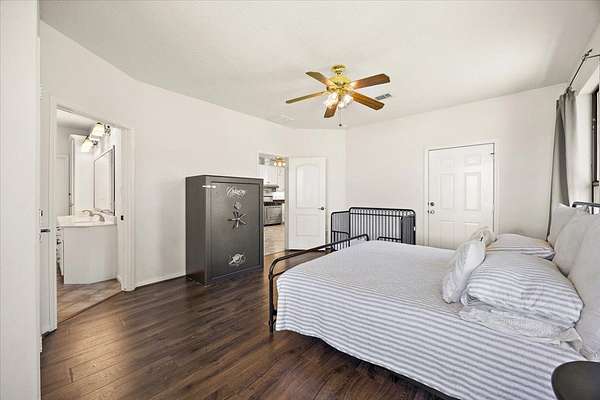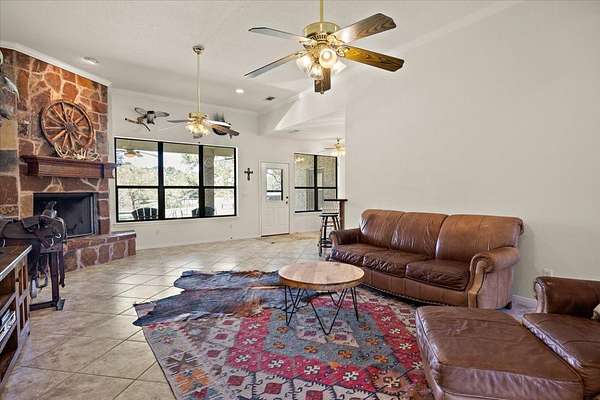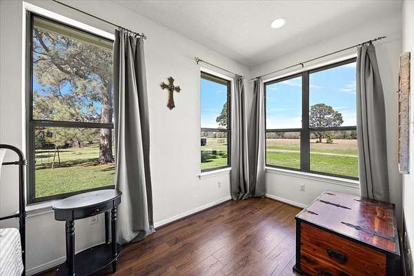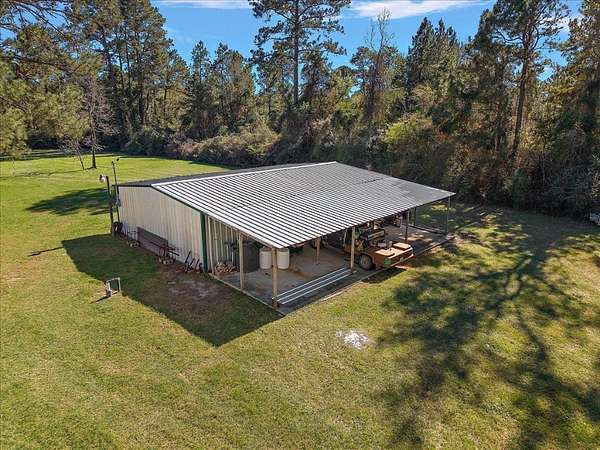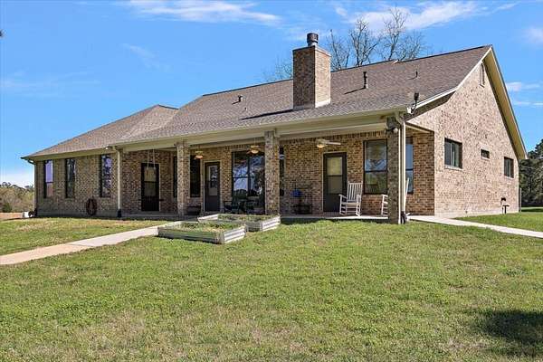 Stunning 3-bedroom, 2.5-bath home set on 49 picturesque acres! Thoughtfully constructed with a full brick facade and a spacious, open interior. The primary suite is filled with natural light and features ample space for a sitting area, along with a generously sized ensuite bath. Formal living and dining areas provide flexible space-perfect for a home office, playroom, or additional entertaining. The family room includes a cozy wood-burning fireplace and large windows that frame views of the backyard. The home is completed by two additional bedrooms with a shared bath for family or guests. Step outside to find multiple barns suitable for storage, equipment, or animals. The property features several ponds, mature hardwoods, and towering pines. A magnificent pecan tree sits in the front yard, along with others that provide your own annual crop of pecans. Pastures are cross fenced providing an area for cattle or horses and a hay field.