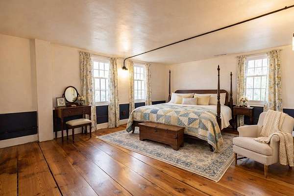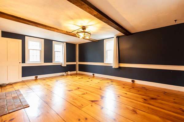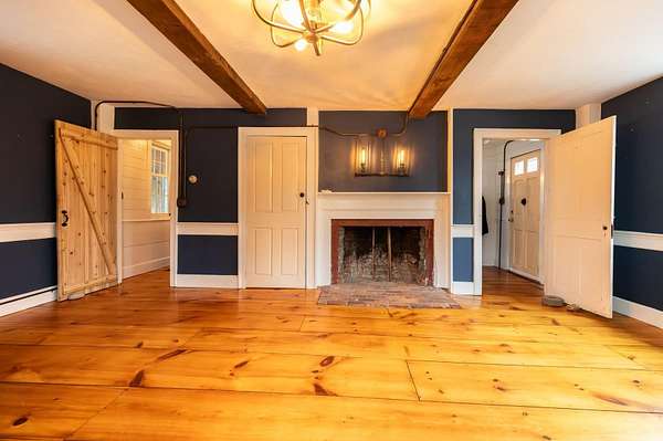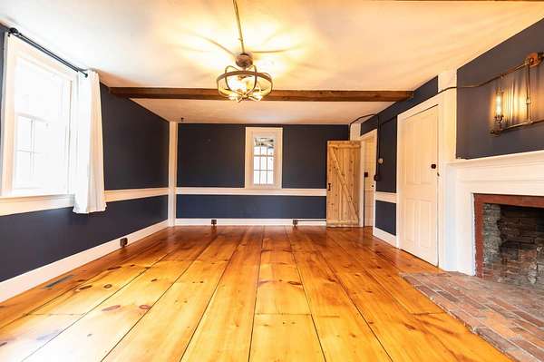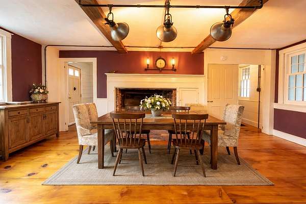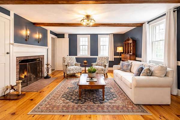 This well maintained 1750 Colonial blends three centuries of character with systematic 2021-2025 upgrades, offering a rare balance of historic integrity and modern reliability. Situated along a peaceful stream, the property features a newly installed 2025 perimeter fence encompassing approximately one acre of level ground, providing a secure and functional space for dogs, chickens, and gardening. The lot is over 7 acres and provides a myriad of creatures within your view. The exterior was extensively restored in 2025, including the replacement of one-third of the original wood siding, a full repaint, and the installation of new, historically appropriate windows. A durable shingle-style metal roof was added in 2021, ensuring long-term protection. Inside, the home centers around a period-correct kitchen designed for modern utility, featuring soapstone countertops, a copper sink, a gas stove, stainless appliances, and a central island with seating. Windows in the kitchen frame the natural landscape, while the adjacent Butler's Pantry and laundry room offer convenient backyard access. The main floor boasts expansive living and dining rooms anchored by two original fireplaces—serviced by a chimney professionally rebuilt in 2021—and a modern 3/4 bath with a glass and stone walk-in shower. Upstairs holds three bedrooms and a full bathroom. Throughout the home, original wide pine floors have been freshly refinished. Mechanical peace of mind is provided by a 2021 forced hot air furnace and updated 200-amp electrical system, and new Geo Max 62 septic in 2023. From the enclosed porch to the stream-side seating, this home functions as a private retreat while serving as a sturdy, updated residence. All major systems, from the roof and windows to the electrical and heating, have been addressed within the last five years, ready for you to move in and enjoy the heritage, and continue to tinker and this beauty heads towards her 300th birthday! Quick Close, staging is virtual.