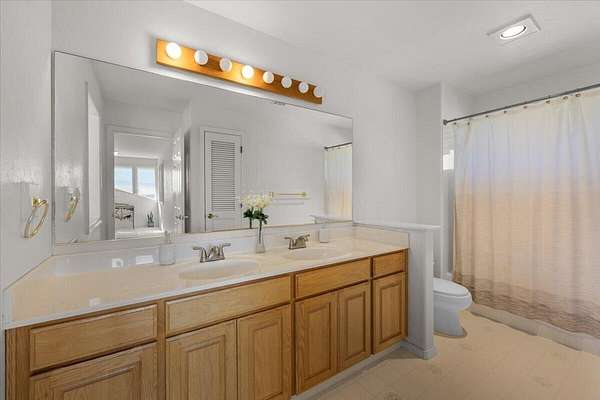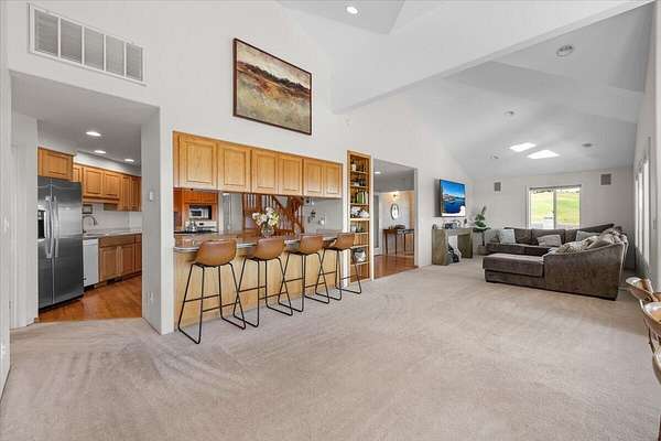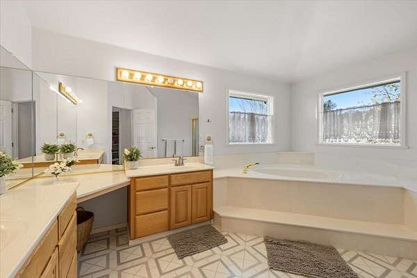- Breakfast Bar, Ceiling Fan(s), Central Vacuum, Double Vanity, Enclosed Toilet(s), Kitchen Island, Laminate Counters, Open Floorplan, Pantry, Primary Downstairs, Shower/Tub Combo, Soaking Tub, Spa/Hot Tub, Tile Counters, Vaulted Ceiling(s), Walk-In Closet(s)
