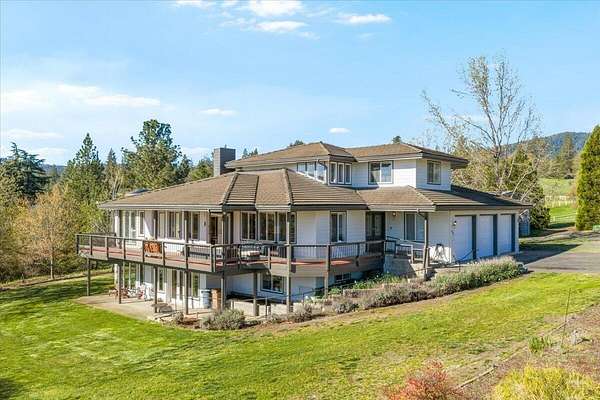 Rare opportunity just 0.25 mi to downtown Jacksonville! This 4,550 SF home offers 5 beds | 3.5 baths on 5+ usable acres with panoramic mountain views. Main level features vaulted ceilings, open living space, and a primary suite on the main level. Daylight basement functions as a separate living unit with private entrance, 2 beds, 1 bath, full kitchen, laundry, and storage; ideal for a larger family, multi-generational living, rental income, or short-term rental (located outside city limits). Property includes a strong well + septic, expansive deck, and detached carport. Bonus: pontoon boat, tractor & mower included. Acreage + walkability + income potential--a rare Jacksonville find!