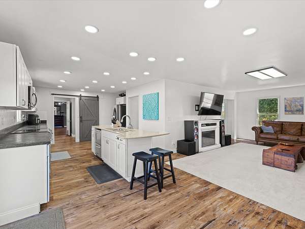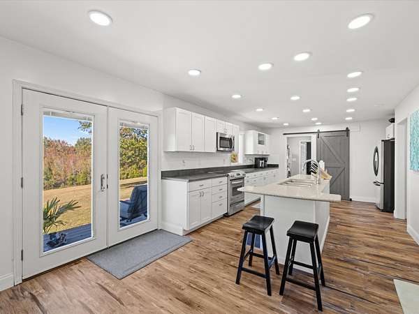 Remodeled Country Retreat on 16.7 rolling acres. Beautifully remodeled and spacious, this 3-bedroom, 3-bath home offers comfort, versatility, and income potential. One of the suites features a private entrance, ideal for a mother-in-law suite, guest quarters, or rental opportunity. The home includes two bonus rooms, a formal dining room, and an open concept kitchen and living area perfect for entertaining. Enjoy thoughtful updates throughout, including a new roof and new HVAC, plus ample storage for convenience. The property features a pond, and a one-stall barn complete with a designated kitchenette and bathroom area-great for hobby farming or hosting events. Unwind on the back deck and take in breathtaking sunsets over the gently rolling landscape.
