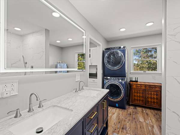 - Dishwasher, Disposal, Dryer, Electric Range, Microwave, Refrigerator, Stainless Steel Appliance(s), Washer