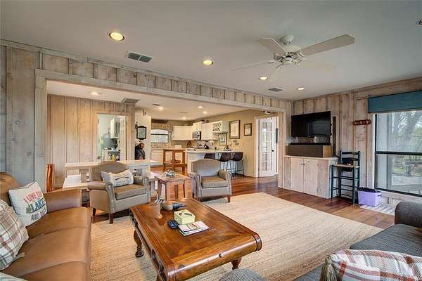 Spanning over 3 wooded acres with 368 feet of waterfront off Birch Creek, the property feels like a private family compound. Trails wind through the trees while wide-open lawn areas invite the kids to stay outside. Fully Sprinklered lawn from the lake! Spend evenings around the large lakeside firepit, challenge friends at the horseshoe pits, or relax on the deck overlooking serene water views and some of Texas' best starry skies.