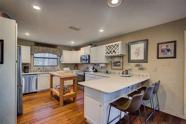 Gather in the open kitchen that features solid surface countertops with breakfast bar, generous cabinetry, and upgraded appliances. 4 private rooms- 3 King beds & one with 4 bunks- space for everyone to pile in. Laundry is mud room with own entrance.