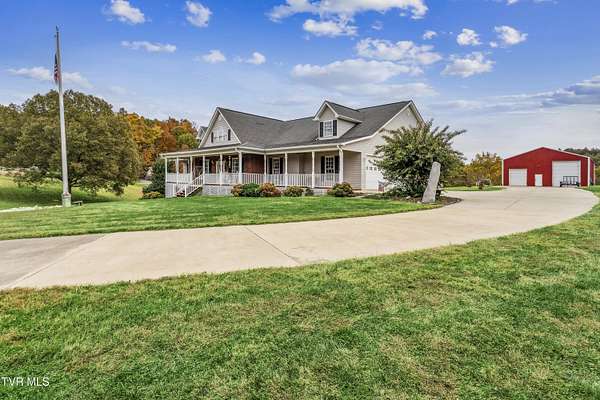 Are you looking for a home you can spread out in? With wide hallways, open spaces and everything on one level? This nearly 4,000 sq ft, custom home has an AMAZING layout. This home is perfect if you need a wing for an in law or guests. The oversized country kitchen lends room for everyone gathering! If you want a quiet space to watch the deer in your yard while you drink your coffee.. there is the perfect window paneled room for that too. 4 Bedrooms with an additional office space, 4.5 bathrooms give space for everyone, work and hobbies. If you need storage; fear not. The entire size of the house has a full basement! The thing that makes this custom extra desirable is the nearly 10 acres that it sits beautifully on. GORGEOUS land, views, creek and even a 40x80 RV GARAGE, with a half bath! This home has it all. If you have dreamed of the ideal East TN place of peace, yet close to 1-81 and all the convenience that brings, look no further!