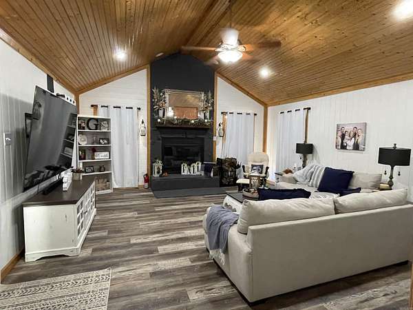 Welcome to this spacious and beautifully maintained home featuring 5 bedrooms and 3.5 bathrooms. There are three generous living areas, offering flexible space for entertaining, relaxing, or even a potential sixth bedroom. Enjoy the warmth of two wood-burning fireplaces, abundant closet and storage space throughout. Recent upgrades include all new interior paint, new flooring, a new roof, exterior paint, updated decks perfect for taking in the beautiful surrounding views. The property also boasts a large storage building, and an additional smaller storage shed, providing both functionality and outdoor enjoyment. This home provides the perfect combination of space, comfort, and country charm. Fabulous covered porch & large deck overlooking the stocked pond. The pond has catfish, Brim, Crappie and Bass in it. 3 Car carport & storage building on 3.72 acres! 2 HVAC units that were replaced in 2019. See Agent Remarks