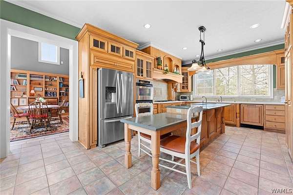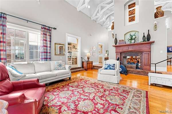 Located in the desirable Tanglewood Country Club Estates, this custom-built home sits on a beautifully maintained 2-acre lot surrounded by mature trees for added privacy. Tanglewood offers a peaceful country club lifestyle with access to golf, fishing, and scenic outdoor recreation, all while being conveniently positioned between Tuscaloosa and Columbus - approximately a 25 -minute drive to either. Thoughtfully designed with both functionality and elegance in mind, the home features hardwood floors, heavy crown molding, varied ceiling heights, a formal dining room, private office, and spacious den. Downstairs offers three additional rooms, providing flexible space for guests, hobbies, or a home gym.