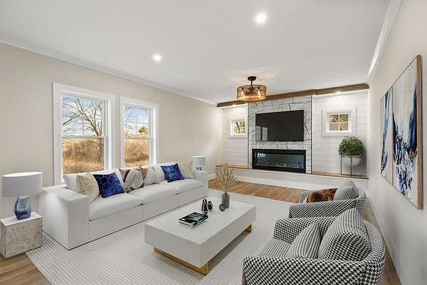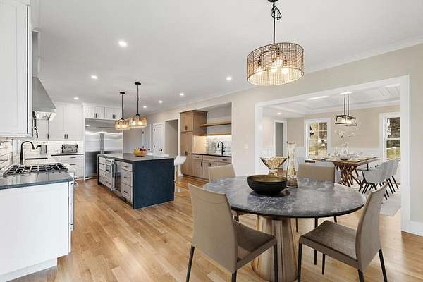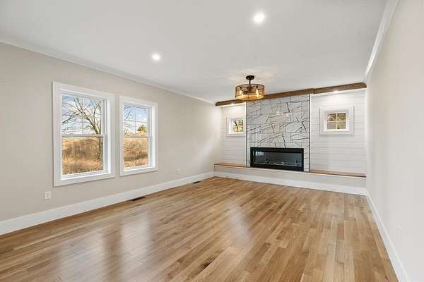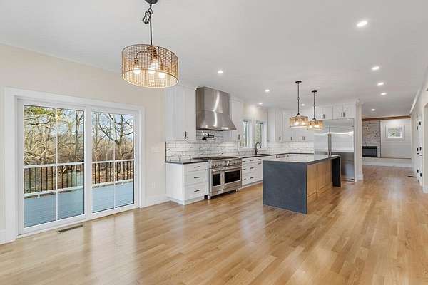 Located in Wakefield, this spacious new construction 4 bed, 3.5 bath home offers exceptional finishes, thoughtful design, and great space to live and entertain. The gourmet kitchen features Cafe appliances, including a 6-burner gas range with griddle, pot filler, and a wet bar ideal for hosting. The first floor offers a bright open layout with a large family room and electric fireplace, plus a dining room and half bath. Upstairs, the primary suite is a true retreat with an elegant bath and an oversized walk-in closet with custom shelving. Two additional generous bedrooms, a full bath, and a laundry room with cabinetry complete the second level. The third floor adds flexibility with a sitting area, private 4th bedroom, and 3/4 bath. A massive unfinished basement offers future expansion potential. Central A/C, propane heat, 2-car garage, town water/sewer. Close to shopping and major routes.
