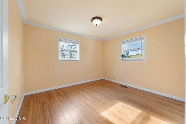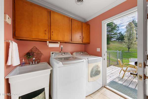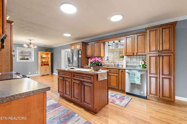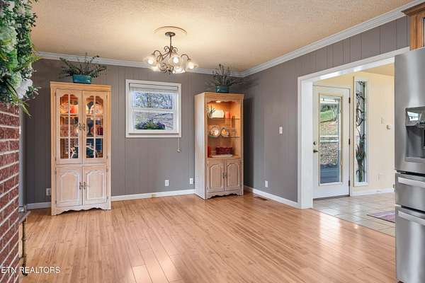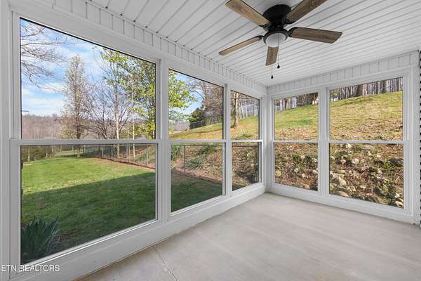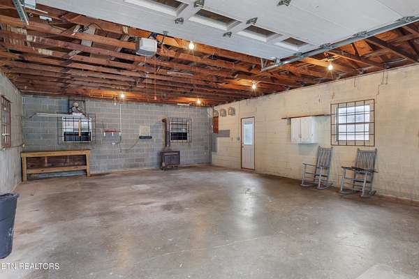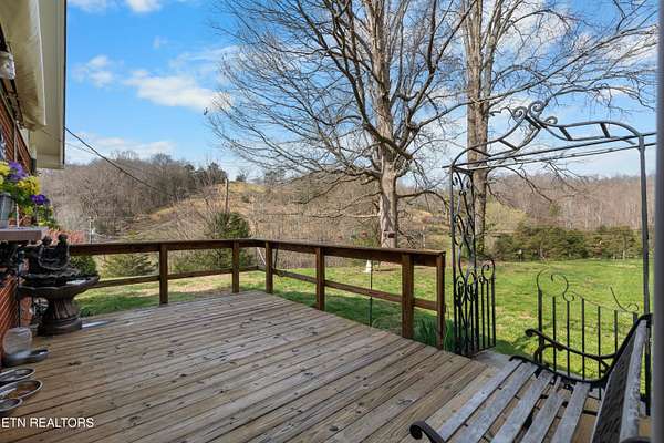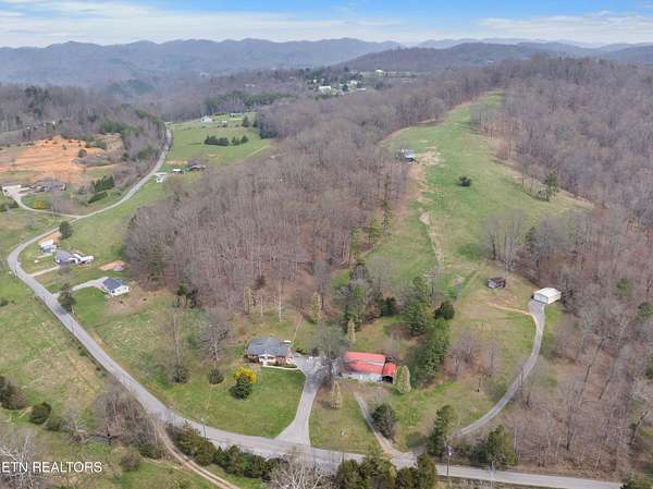 Renovated basement ranch home situated on nearly 32 acres offering a ready to go, functional farm setup, versatile living space with multi-generational capabilities, and scenic mountain views. The property features fenced and cross-fenced pastureland along with multiple agricultural improvements including a large hay barn (built in 2006/07) with an overhang shelter, Tarter cattle loading chute, hay rings, calf feeder, and a concrete watering trough with float system and heater. Additional outbuildings provide storage and operational support for a variety of uses. The updated, brick basement ranch home offers a flexible floor plan with updated kitchen and bathroom spaces, along with custom cabinetry with pullouts, updated flooring, windows, and paint. The kitchen includes a large, movable tile island for versatility, and the home features two full bathrooms on the main floor with updated and accessible design elements. A spacious sunroom/family room addition includes vaulted ceilings, large windows, custom stain glass, and a gas log fireplace, creating a bright living area that overlooks the fenced backyard. From here you can walk out to an additional enclosed patio/sunroom that leads out to a wood deck overlooking the side pasture & yard as well as the surrounding views. The partially finished basement includes a 3rd bedroom or large rec/bonus room with a wood-burning fireplace. The basement also features an additional kitchen area with its own full-size refrigerator and freezer, additional storage closets, and garage parking! Making this home a standout for those looking for additional living spaces for multi-generational living. A chair lift provides easy access between levels for all ages and conveys with the property. A detached block building offers an additional 2,100+/- square feet of enclosed space divided in two portions! Perfect for those that are looking for additional storage, workshop, or just additional vehicle parking. One side of the structure includes a large shop area with wood stove, and the other side serves as an enclosed RV garage with approximately 14-foot door clearance, it's own electrical service, plumbing connections, and septic hookup to it's own individual septic! An additional gravel entrance provides access to an additional shed and carport for equipment/tractor storage, and an additional paved drive provides access to a secondary area of the property featuring an additional 2 car metal garage/workshop, as well as an additional RV/mobile home/building site with existing utilities, and gated access to pasture. The entire property is served by public water, but there is also a well available on site if desired with a valve inside the house to convert to the well water source. Conveniently located just 2.5 miles from the Knox County line off Tazewell Pike, with state road access to nearby amenities while maintaining a more rural setting. SHOWN BY APPT ONLY