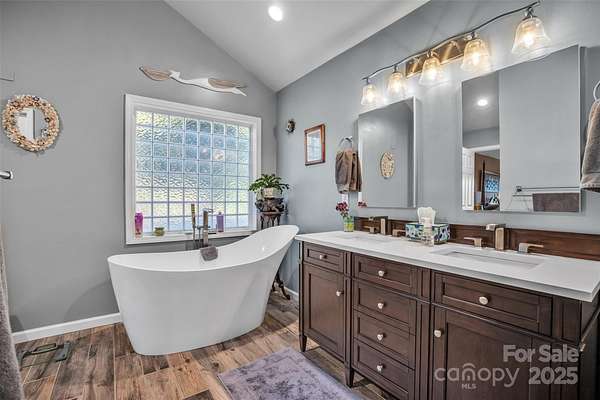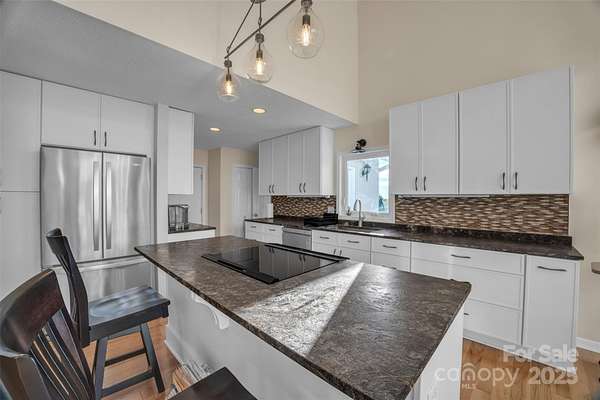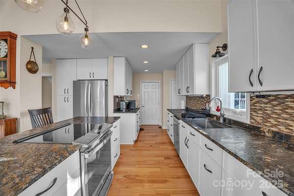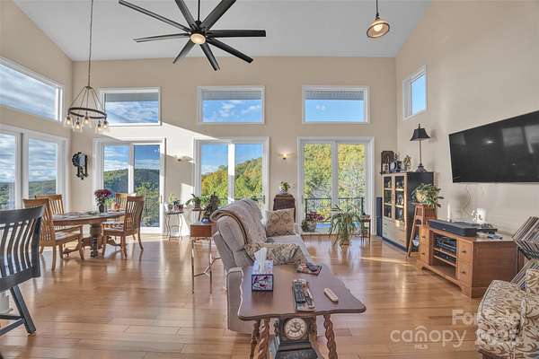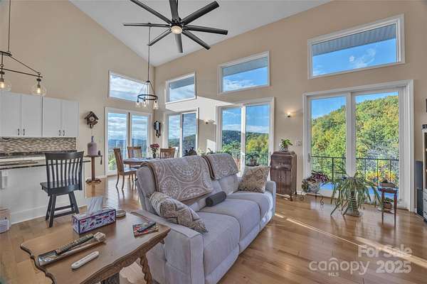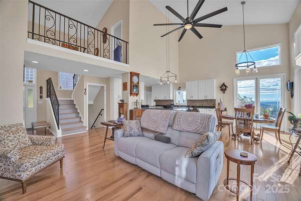 Experience mountain elegance and panoramic views that stretch all the way to Charlotte on a clear day at 3950 Ball Alley Creek Road in Valdese. Nestled on 9.61 acres of serene landscape, this stunning three-level home perfectly blends modern comfort with breathtaking natural beauty. The main level showcases a spacious primary suite with private bath and deck access, an expansive living room with soaring ceilings and a beautifully appointed updated kitchen with dining area, ideal for entertaining. A half bath, main-floor laundry, and attached two-car garage add convenience and functionality. Upstairs, a loft overlooks the living area, creating a dramatic sense of openness, while two generously sized bedrooms and a full bath provide space for family or guests. The lower level offers incredible versatility with open space for whatever your heart desires, a half bath and tremendous storage area. Thoughtfully updated with a new roof (2017), dual fuel HVAC (2021), whole-home water filtration system (2019) and radon mitigation system, this home is as well-maintained as it is beautiful. Enjoy the peace and privacy of mountain living from the expansive deck, where endless horizons and glowing sunsets create a view you'll never tire of. Located just minutes from Valdese, Morganton, and I-40, this home offers luxurious living, unmatched views, and exceptional quality-a true retreat above it all.