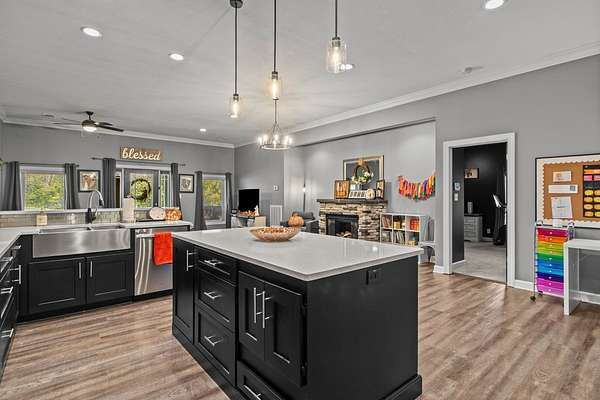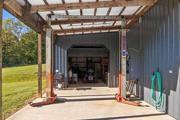 Custom built barndominium of your dreams!! This home sits on 5 perfectly laid acres!! Over 1,350' of road frontage! Exterior dimensions measuring 136'x50', this give you 45'x50' living area, 75'x50' garage, & a 16'x50 carport/attached garage with a 2 post lift. The living area is an open floor plan with 10' ceilings! LVP & carpet floor throughout. The kitchen features custom cabinets & counter tops, all stainless steel appliances, 6'x3' island, large 7'x10' pantry, & a 4 stool eat at bar!! Family room is very spacious (16'x21') & features a rock fireplace with gas logs!! Large primary bedroom with 2 walk in closets, 15'x10' & 11'x5'!! Primary bathroom consist of a double vanity, custom walk in tile shower with dual shower heads, & a big soaking tub!! All of the bedrooms in this home are sizable with lots of closet space!! 10'x6' laundry room & a 5'x5' mudroom!! Over 2,000 SqFt of storage above the living area!! The 3,750 SqFt garage offers gas heat, 1/2 bath, stainless sink, insulated garage doors (2 have power openers), & so much more! This area is great for entertaining family & friends, working on you projects, maintenance on vehicle & equipment, & so much more! The 2 post lift on the covered carport is rated for 9,000 lbs, and the attached garage is great for storage of your not used everyday belongings.. The 15'x36' out building is has water & electricity!!