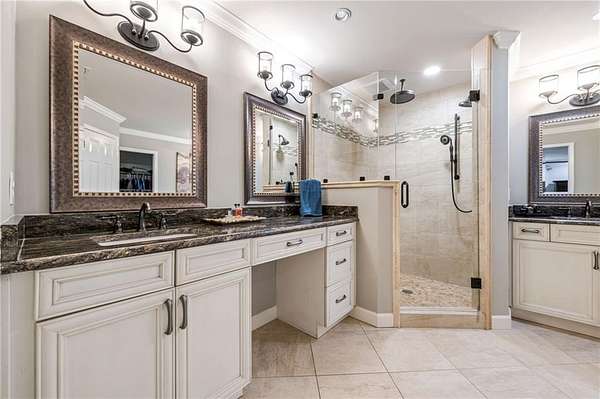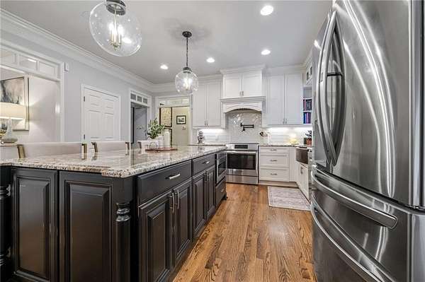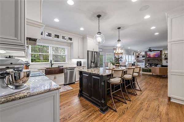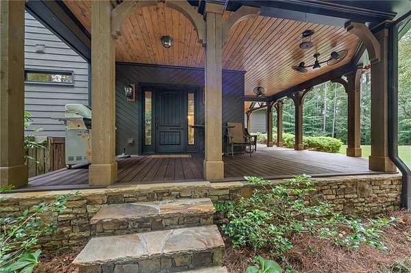 Experience luxury living in a secluded, prime location on 3.76 wooded acres in Ryan's Bluff at Kelly Mill. This open concept estate features a gourmet kitchen with granite countertops, island, stainless appliances, pot filler, vegetable sink, and bay window in the eat-in area. Main level includes family room with stacked-stone fireplace, formal dining and living rooms, office, and two wood-burning fireplaces. Upstairs offers large primary suite, guest bedroom with private bath, two bedrooms sharing Jack-and-Jill bath, generous bonus room, and laundry. Finished terrace level adds two bedrooms, full bath, rec space, and additional washer/dryer connection. Equestrian-friendly with fenced areas, trailer parking, 3-car garage, boat/RV parking, and serene wooded setting. Convenient to top schools, shopping, and dining.