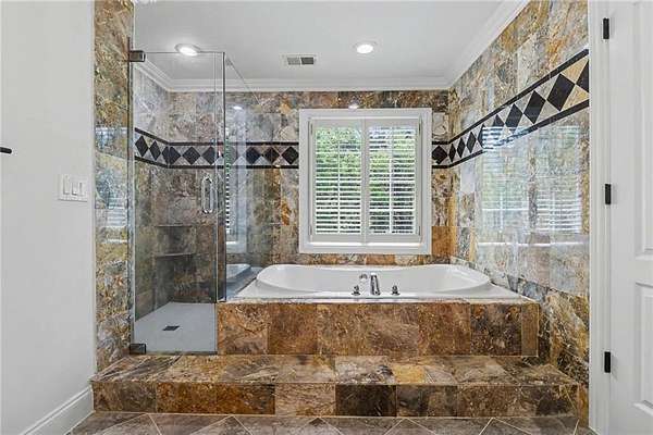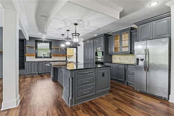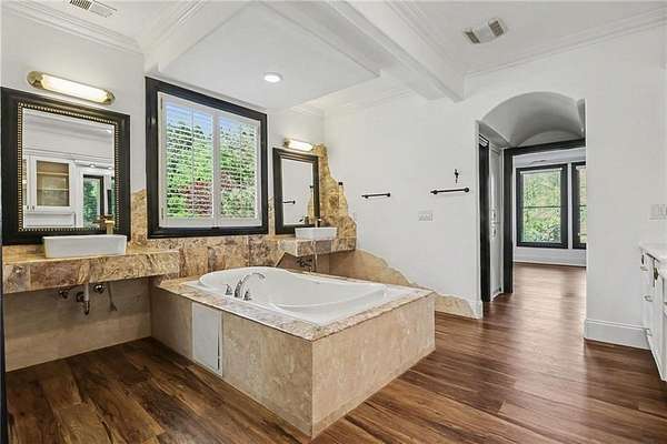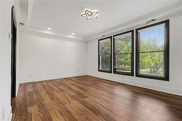 Luxury Sandy Springs retreat tucked away on a private street at the end of a cul-de-sac, set on an incredible 2-acre lot. This beautifully updated 5-bedroom, 4-bath home offers a flexible floorplan with two spacious primary suites-one on each level. There is an additional bedroom and full bath on the main floor, ideal for guests or multigenerational living. Upstairs, two secondary bedrooms are connected by a convenient Jack-and-Jill bath. Inside, you'll find new LVP flooring throughout and a bright, open-concept layout designed for both comfortable everyday living and effortless entertaining. Large windows throughout the home fill the space with abundant natural sunlight and showcase beautiful views of the expansive backyard. The chef's kitchen is equipped with granite countertops, stainless steel appliances, double ovens, two dishwashers, a vegetable sink, and abundant prep space. An oversized formal dining room easily accommodates 12 guests, while the inviting keeping room with a gas fireplace creates a warm gathering space. A separate formal living room with French doors opens to the lush backyard, further enhancing the home's airy and light-filled feel. The upstairs primary suite also includes a large bonus space ideal for a home office, storage, sitting room, or an oversized custom closet. Outside, the sprawling backyard offers endless possibilities for entertaining, recreation, or simply enjoying the peaceful natural setting. Surrounded by mature greenery and abundant wildlife, this special property provides a rare opportunity to enjoy sightings of deer, eagles, and cranes right from your own backyard. Completing the home is a 4-car garage** and an unmatched setting that combines space, comfort, and natural beauty in the heart of Sandy Springs.