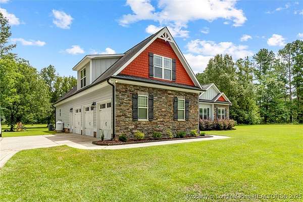 Stunning Riverfront Craftsman Estate on 15+ Acres | No HOA | VA Assumable Loan | Open House 11/15 and 11/16! Discover the ultimate blend of privacy, elegance, and outdoor living with this move-in ready Craftsman-style estate overlooking the Cape Fear River. Set on just over 15 acres of cleared and wooded land, this property offers a rare chance to enjoy country living with no HOA restrictions-all while staying minutes from Fayetteville's shopping, dining, and Fort Liberty. Inside, you'll find 2,916 sq ft of spacious, light-filled living designed for both comfort and convenience. Each of the bedrooms features its own en-suite bathroom, including the main-level primary suite for easy accessibility. A versatile bonus suite with private bath above the garage makes the perfect guest retreat, home office, or gym. The heart of the home is the dream kitchen with granite countertops and eat-in dining, seamlessly connected to the living room. Enjoy cozy evenings by the stone fireplace with custom built-ins, or work from home in the dedicated office/study with built-in bookshelves. Step outside to multiple porches, a screened patio, and direct riverfront access where you can fish, kayak, or relax with tranquil water views. A spacious 3-car garage, durable Hardi Plank + stone veneer construction, central air, and a gas-log fireplace add lasting value. ?? Additional highlights: Built in 2012 with quality craftsmanship. No HOA - true freedom and flexibility. VA assumable loan available - $422,344 remaining balance. Perfect blend of privacy, outdoor adventure, and modern comfort. This property is more than a home-it's a lifestyle retreat. Don't miss your chance to own a piece of paradise along the Cape Fear River.