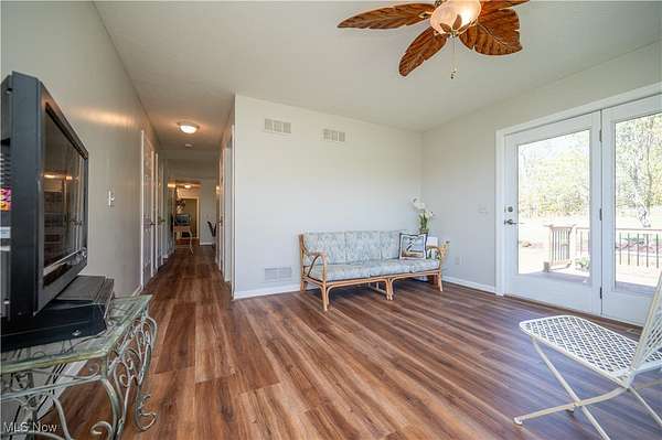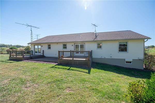 Serenity and peace in this private setting on a gorgeous 12 acre lot with amazing views and one floor living to make this property your forever address! Slowly drive for over an acre before you even reach the real stretch of land for your new country oasis! Pass the large barn and further still to reach this vinyl ranch. On The covered front porch, take a deep breath and take it all in. Attention to detail and thoughtful choices with a careful eye might be one of your first thoughts as you walk into this lovely updated and well taken care of home. Super well built with all quality materials. Great natural lighting and all fresh paint tones throughout. Gorgeous updated kitchen with tasteful granite. Island. All appliances stay. Eat in area overlooks one of the sides of the awesome deck which spans the entire back of the home. HUGE Family room/four season room with great views from every turn. A 2nd set of glass doors lead out to the deck as well. Owner suite with a private modern full bath. Two additional beds on this floor and a modern guest full bath as well. The full walk out basement is a real surprise, and if you are looking for an apartment, this has a wonderful suite with eat in kitchen, living area, full bath & bedroom with large closet! SO MUCH Potential! Glass slider leads out to your own private patio and gorgeous view. Quality built, All exterior walls are 2x6 wood studs on 16" center w/ R-19 insulation & R-40 in the attic. The barn has water, electric and two large stalls for your horses, an oversized stall for a stallion along with tons of storage & potential for a fourth stall! Farrier shed. Attached garage. Central air. Propane heat. Easy maintenance landscaping. So much to offer! This home is a must see in person, to appreciate the meticulous care, pride of ownership and peaceful tranquilty. Pre-inspected for ease of mind. Septic and well have passed county point of sale inspections! Call today!