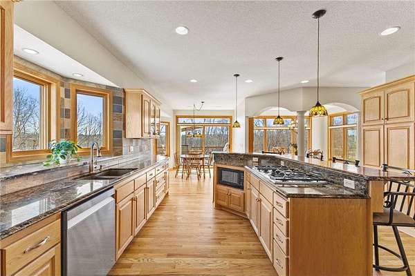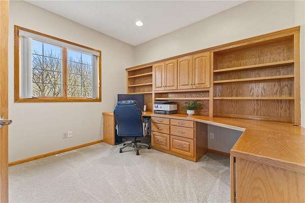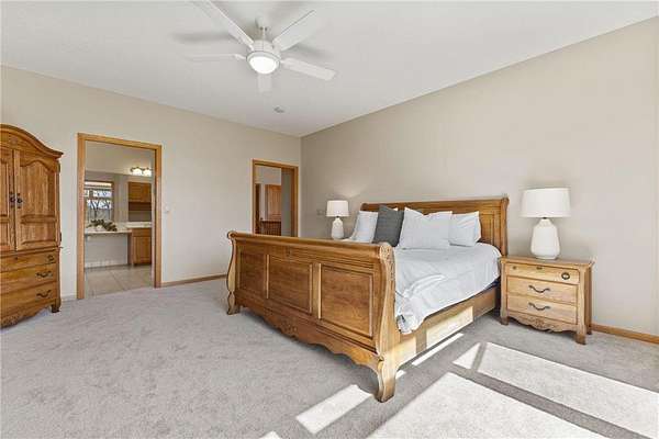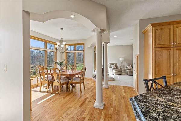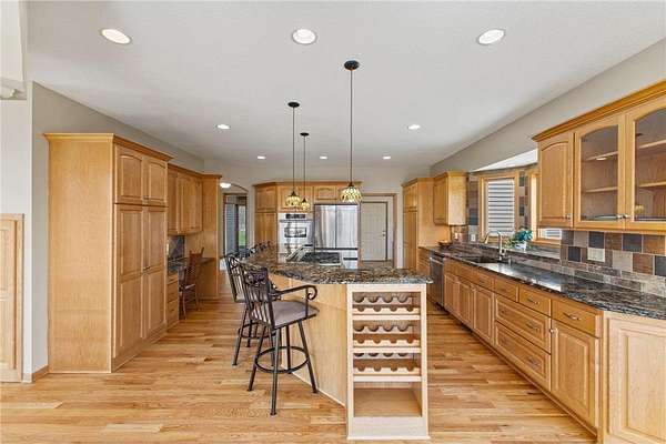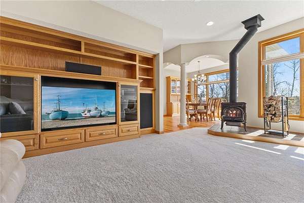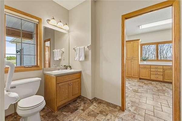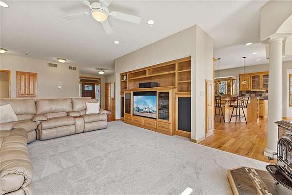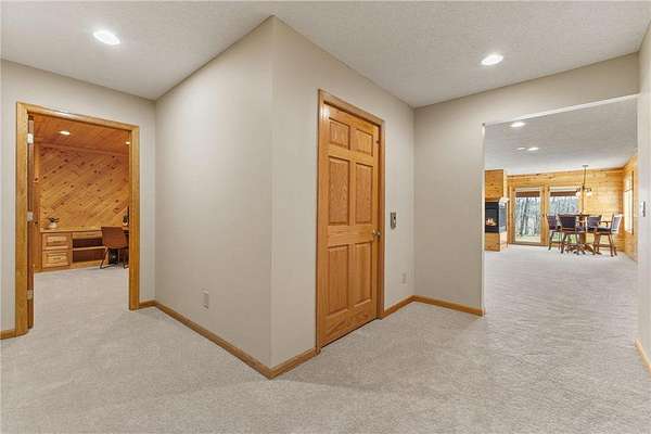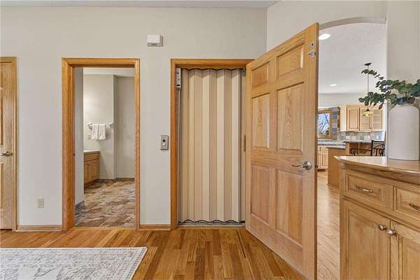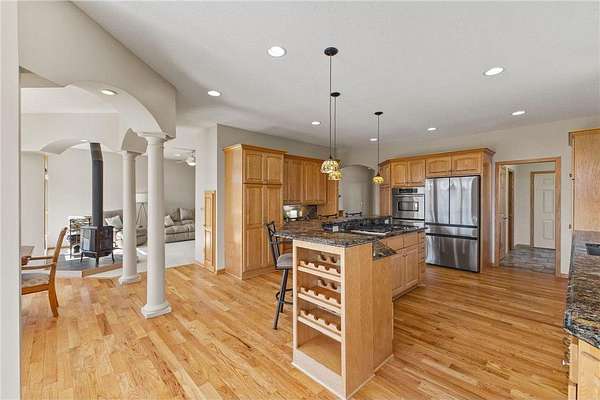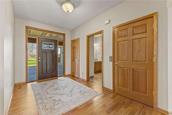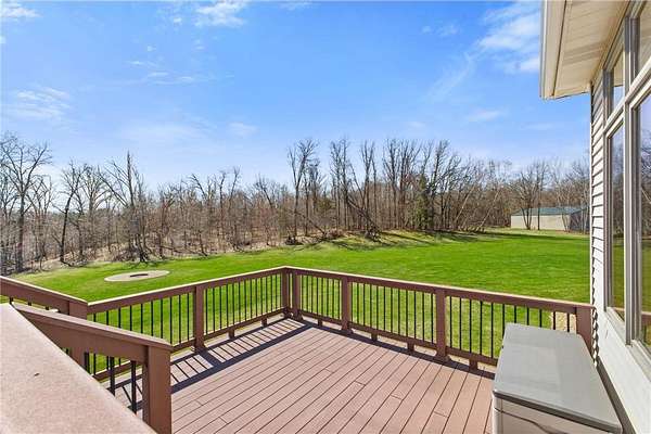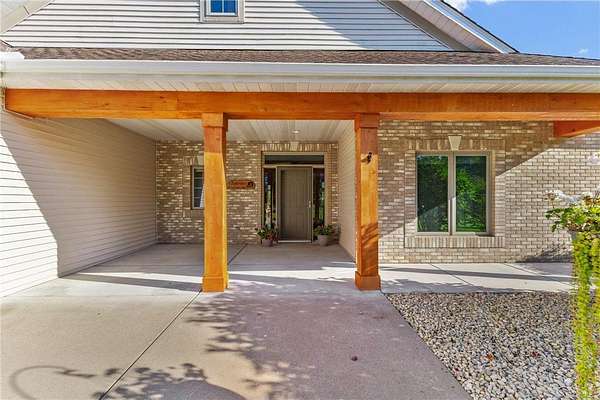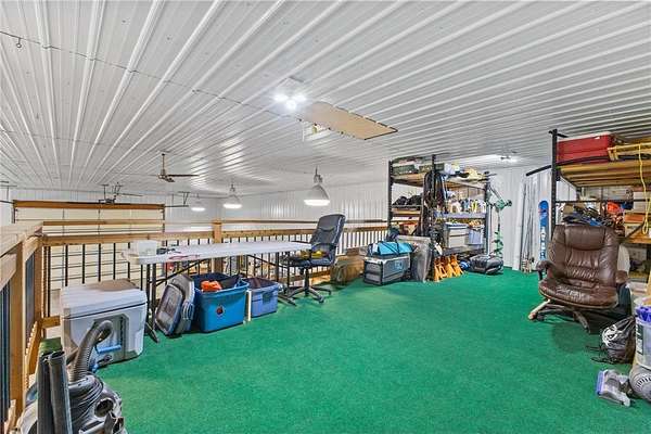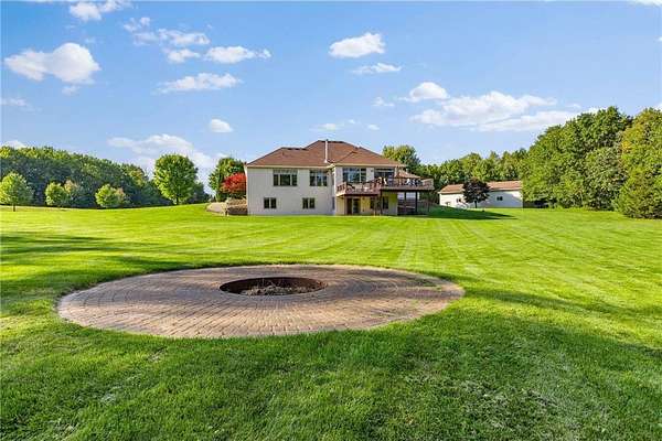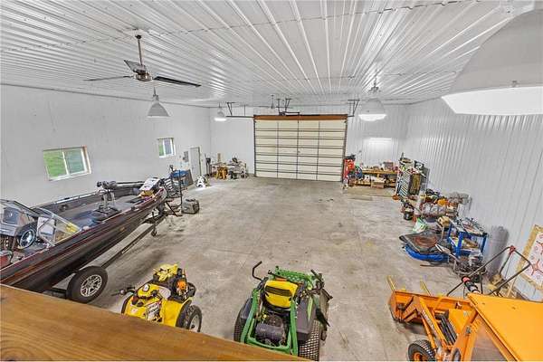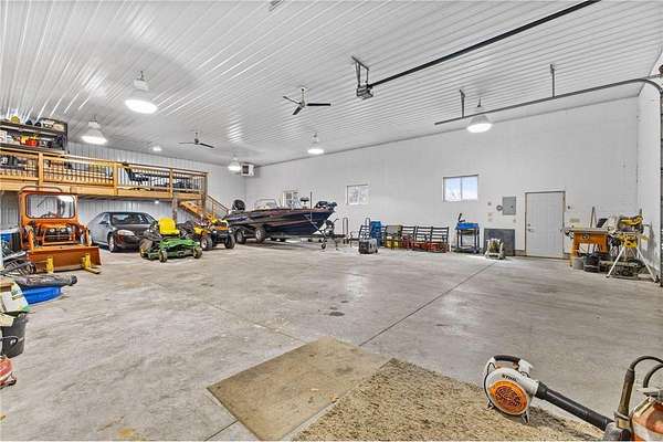 Custom built home on 10 beautiful acres in Stamm Farms! Tucked away at the end of a cul-de-sac, this one of a kind property offers the perfect blend of privacy and neighborhood feels. Upon entering the home you are welcomed by 9' ceilings and sprawling views of nature out every window. Home offers single level living with all living facilities on the main level and is even handicap friendly with no external stairs, 36" doors, grab bars and elevator. Stunning kitchen with large island, granite counters, natural stone backsplash, stainless appliances, pantry and freshly refinished hardwood floors. Informal breakfast nook and formal dining space for entertaining. Living Room with brand new carpet has built ins and wood fireplace to cozy up to on cold winter nights. Spacious Laundry Room off garage entry and 1/2 bathroom for guests. Office perfect for remote working with custom built ins, desk and fiber optic internet. Junior Suite on main level with private full bathroom. Large Primary Suite with walk in closet and spectacular ensuite including roll in tile shower, double vanity and jetted, soaker tub. Walkout lower level holds 2 more spacious bedrooms, one with a walk thru to 3/4 bathroom with custom tiled shower. Huge Family/Media Room with 3 sided fireplace, built-ins and projector screen. Additional den with built in desk, cabinets and safe. Massive unfinished storage area too meet all of your storage needs. Attached garage is heated and insulated with hot/cold water, floor drain and built in shelving. Additional 40x60 detached garage that is also heated and insulated with mezzanine for storage or future gaming area. New roof on home in April of 2026. Septic certified and compliant. 17 zone irrigation system. Schedule your showing TODAY!