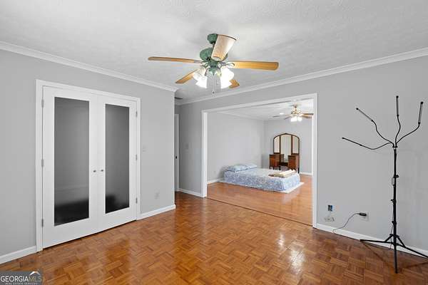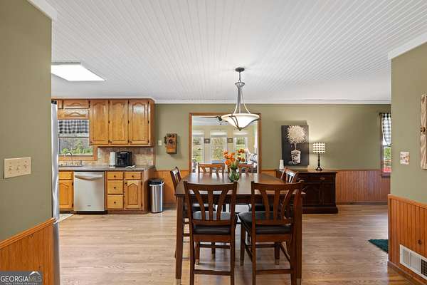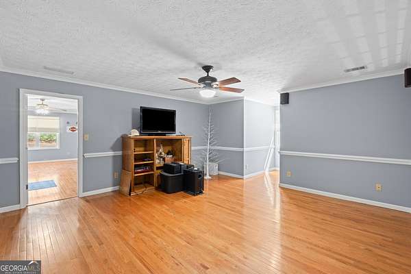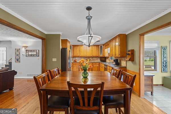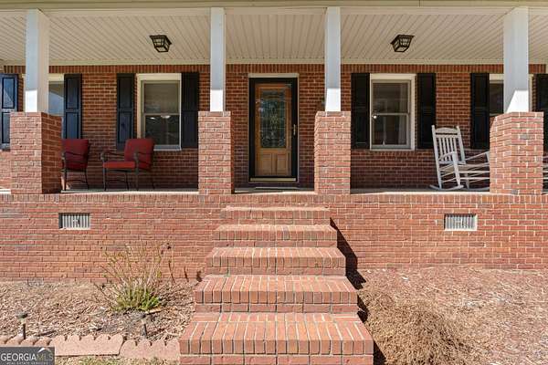 Tucked away on a private 2-acre lot in Henry County with no HOA, this charming four-sided brick home offers the perfect blend of space, privacy, and timeless character. Set back from the road and neighboring the beloved Sugarland Christmas Tree Farm, you'll enjoy a picturesque, peaceful setting that feels like the holidays year-round. Outside, the home welcomes you with a covered rocking chair front porch, ideal for slow mornings and evening unwinding. The expansive backyard features box gardens, a large patio for entertaining, and plenty of open space to enjoy. In addition to the attached two-car garage, a massive detached garage with electricity and a wood-burning stove offers incredible flexibility-perfect for a workshop, storage, or even the potential for a separate living space. Inside, original hardwood floors flow throughout, adding warmth and character. The spacious family room centers around a classic brick fireplace and seamlessly connects to the dining area and kitchen, complete with granite countertops. Just off the kitchen, a bright and inviting sunroom provides the perfect spot to relax, with direct access to the back patio. The main level also features a large laundry room with cabinetry, a convenient half bath, and a generously sized primary suite with a walk-in closet and en suite bath, complete with a whirlpool tub and separate shower. Upstairs, you'll find a versatile secondary living space at the top of the stairs, along with a large bonus room featuring two unfinished areas that could easily be converted into closets-making this a true fourth bedroom. Two additional bedrooms and a full bath complete the upper level, offering plenty of room for family, guests, or creative use. With its serene setting, flexible spaces, and classic charm, this property offers a rare opportunity to enjoy peaceful country living with room to grow.