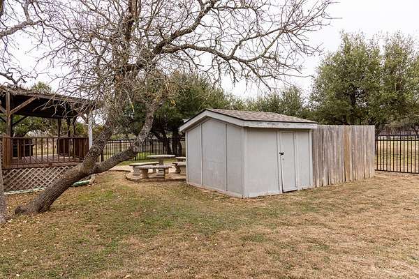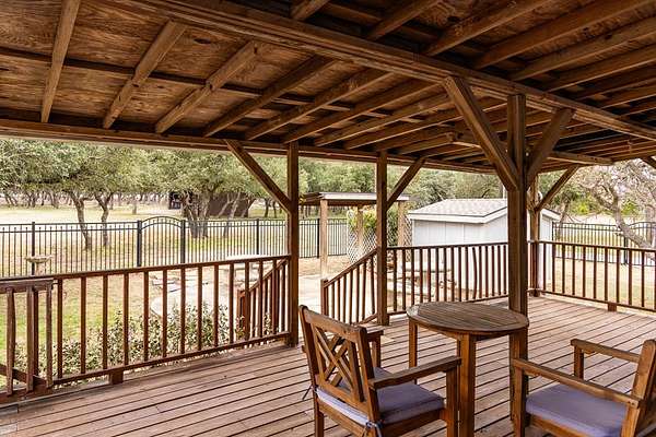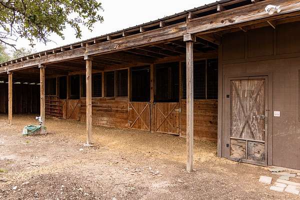 Welcome home to your peaceful Hill Country homestead. If you've been searching for a serene retreat, this one checks all the boxes. Nestled on 15.5 acres, is a perfect horse lover's paradise.The land features deep soil, healthy grass, scattered oak groves, and wide-open pasture, with much of the cedar already cleared. Designed with efficiency in mind, the home offers thermal pane windows, 2x6 exterior walls, and upgraded insulation in both walls and ceiling. Inside the 3-bedroom, 2-bath home you'll find an open-concept floor plan, a spacious laundry room with deep utility sink, and direct access to the attached garage and workshop. Step outside and relax on the 17x23 covered back deck, perfect for enjoying quiet country evenings. Additional improvements include an RV carport with a 30-amp plug, wrought-iron fenced front and backyard areas, and a dedicated dog run. For the equestrian enthusiast, the four-stall horse barn is fully equipped with water, electricity, a tack room, and hay storage. The property is perimeter fenced and cross-fenced, with a gated entrance providing privacy and security-ideal for livestock, horses, or simply enjoying country living.