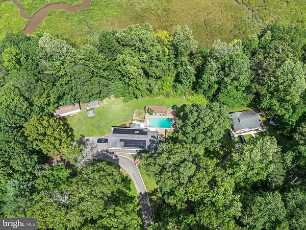 Country Estate on 3 Acres with TWO Homes, Pool & Private Creek Access. End of a private road, seclusion meets multi-gen flexibility. Privacy, Rental potential - A true retreat. Tucked away at the end of a private road on 3 acres, this peaceful and secluded retreat offers the ultimate in country living with spectacular views of Indian Creek and an abundance of space for multi-generational living, entertaining, and outdoor recreation. The main residence features 6 bedrooms and 4.5 bathrooms, thoughtfully designed for comfort and function. Complementing the main home is a separate 2-bedroom, 2-bath guest house, renovated to include roof, siding, updated kitchen and bathrooms, -ideal for in-laws, a home office, or as a rental income opportunity with separate electric metering. Both homes operate with separate septic systems and independent wells. Enjoy the expansive country kitchen, outfitted with stainless steel appliances, abundant cabinetry with pull-out drawers, and ample counter space for gatherings. Relax in one of two primary suites, each offering soaking tubs, separate showers, and serene views. Outdoors, the property is a true oasis. Launch your kayaks or canoes from your private pier and take in the breathtaking natural surroundings. Or unwind poolside with a dip in the fenced-in, in-ground pool, complete with a screened 12x40 pool house for shaded comfort. Additional features include: 14x40 Amish-built shed, one with electricity Custom chicken coop Heated floors and 3-zone baseboard hot water heating Full laundry room with oversized utility sink Pellet stove and two wood-burning stoves for cozy winter nights Generator hookup for whole-home backup power Large metal patio deck and welcoming front porch Custom-built children's playground and playhouse Solar panels, lease to convey Whether you're watching wildlife from the porch, enjoying a summer afternoon by the pool, or spending quality time indoors with family, this one-of-a-kind property offers a rare opportunity to live your dream lifestyle.
