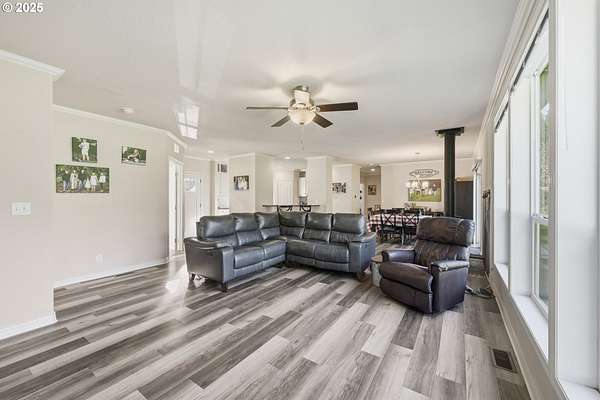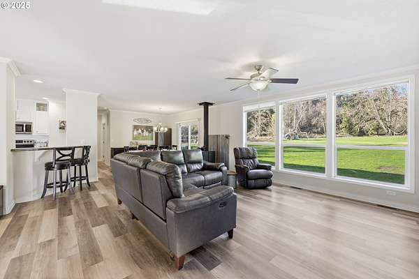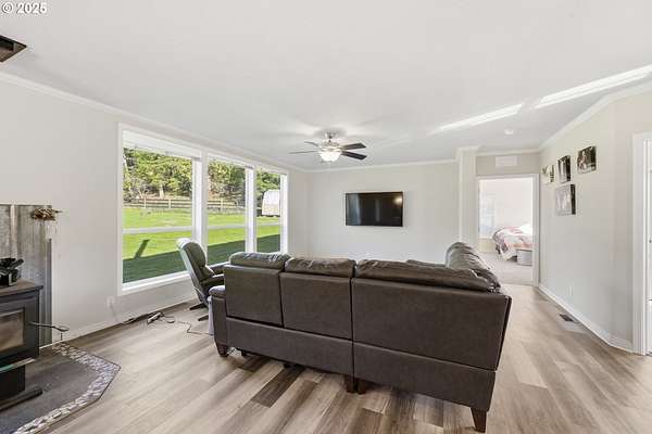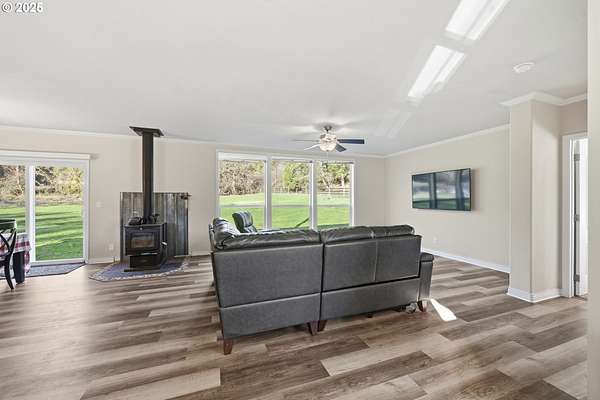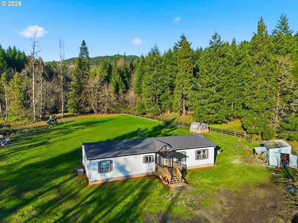 Discover the beauty of country living on 36+ peaceful acres surrounded by timber, open pasture, and a seasonal creek. This exceptional property features a 2022 manufactured home with an inviting open-concept floor plan, modern finishes, and effortless single-level living. Office could be 4th bedroom. The light-filled interior is designed for comfort and functionality-ideal as a full-time residence, private retreat, or small farm setup.Outside, the land offers a perfect balance of thinned timber, open meadow, and privacy, providing endless opportunities for animals, gardening, recreation, or simply enjoying the natural setting. A well-situated barn adds versatility for livestock, equipment, or additional storage, while the large backyard with a firepit creates a welcoming space to gather and unwind.With pastureland, forested areas, and a tranquil seasonal stream flowing through portions of the property, this acreage captures the best of rural Oregon living-all while remaining conveniently accessible to Lowell, Fall Creek, and Springfield amenities.Adjoining property also listed - MLS #664450725.