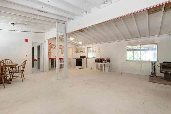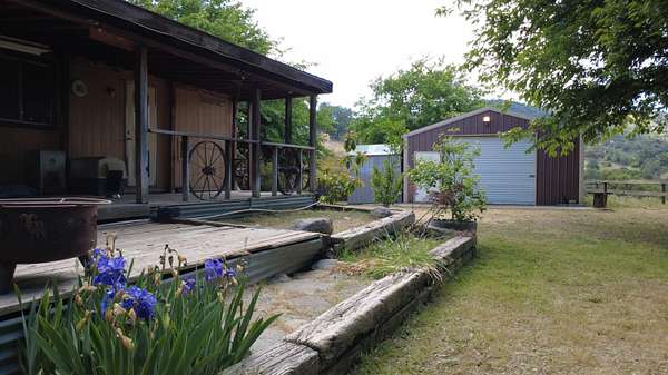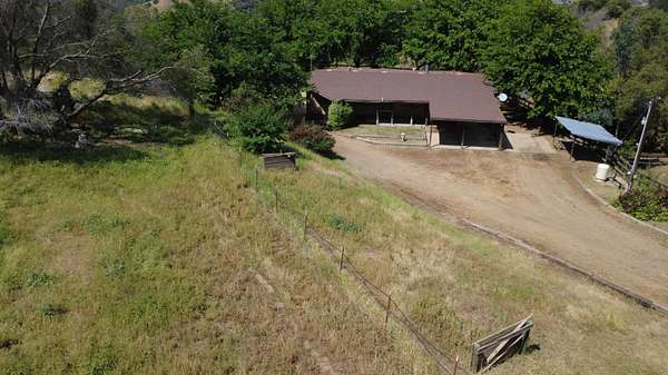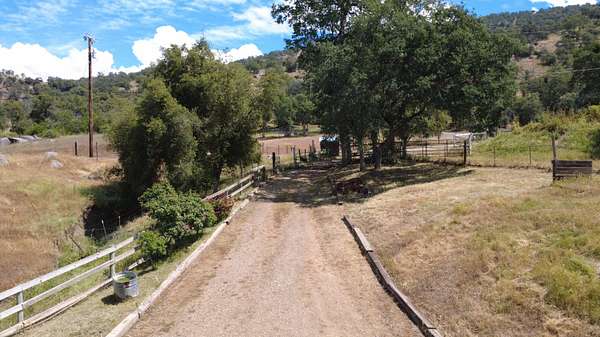 Embrace the authentic ranch lifestyle on this 10+-acre property consisting of two distinct parcels, with a third undeveloped, fully fenced parcel also available separately. Graced with mature Oaks, Buckeye, and Mulberry trees, and great grazing over a rolling terrain, this land offers a serene setting and incredible views that must be seen to be appreciated. The property is a dream for animal lovers, coming fully fenced and cross-fenced, making it move-in ready for your horses and livestock from day one. A rare, year-round natural spring offers additional natural water on the land, while the north parcel is specifically equipped with a riding arena, an open-sided covered pole barn, and a container for additional storage. The main residence is situated near an impressive array of outbuildings, including a large covered open-end hay barn/RV storage, a two-car carport, a finished shed previously and office, and an enclosed garage. The home itself presents a fantastic project for a buyer looking to build equity and is a perfect candidate for an FHA 203k renovation loan. The interior features a spacious living room with beautiful vaulted ceilings with 2x6joists, and a nicely finished main bathroom. While the home currently lacks a kitchen and HVAC, the walls are already sheet rocked offering a blank canvas to customize the heart of the home to your exact taste. Much of the materials to finish, including flooring are already purchased. Enjoy the mountain breeze from the covered porches on both the front and back of the home, or cozy up to the wood stove on cooler evenings. Best of all, you can enjoy the peace of the country without sacrificing convenience, as you are located just minutes from the local country store for daily essentials. This is a unique opportunity to finish a dream homestead in a breathtaking natural setting. Please make an appointment, under surveillance & dogs may be out.