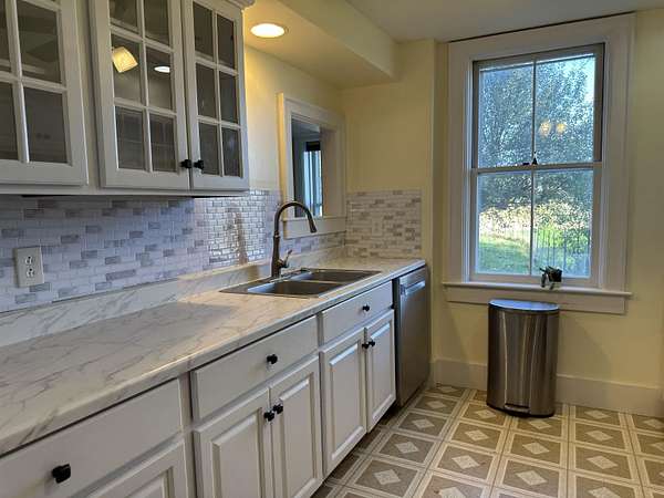 This historic home enjoys Green Mountain views, and includes a partially finished barn- perfect for a workshop, event space or storage! The residence has hardwood floors throughout the first floor, with plenty of natural light. Enter in through the spacious foyer, with a sitting room just to the right. Ahead is the dining room with a newly updated kitchen just beyond- with an office or first floor bedroom option and full bath down the hall. A living room with fireplace is on the back of the home, with mudroom and attached garage. The front porch makes a comfortable sunroom- looking towards the mountains. Upstairs are four bedrooms, two with en suite 3/4 baths, and two share a full bath. Over the garage space is a one bedroom in law suite, with kitchen and laundry! The spacious yard has fruit trees and room for gardens. Just minutes to Middlebury and the College, So Many Possibilities!