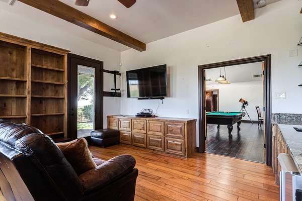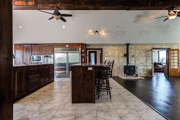 Welcome to Sand Creek Ranch: A Rare Oasis Near Lubbock. Experience the ultimate weekend getaway or full-time retreat at Sand Creek Ranch, an exclusive gated community offering a lifestyle defined by privacy, recreation, and breathtaking canyon views. This is a rare opportunity to own a home in a spectacular oasis just 30 minutes from Texas Tech and the medical district. The Land & LifestyleOwnership includes a share in the Sand Creek Corporation, granting you access to 1,000 shared acres designed for the outdoor enthusiast. Recreation: Miles of trails for hiking, biking, and ATV riding. Community Amenities: Enjoy a community pool maintained by a foreman, complete with restrooms, a sink, grill, and a fire-pit. Exclusive Privacy: With only 13 members and 12 existing houses, this close-knit community primarily serves as a weekend retreat. Livestock Friendly: The ranch maintains 10 cows and 2 llamas; however, each individual member is allowed to own 2 personal cows or horses. The Residence Designed for both luxury and resilience, this one-level, handicap-friendly home is built with fire-resistant materials and features a wildlife-proof fence. Entertainer's Dream: The open living area is perfect for hosting large groups, featuring a huge flex room (ideal as an office or media room) equipped with a wet bar. Chef's Kitchen: A culinary masterpiece with two islands, stainless steel modern appliances, granite countertops, and breakfast bar seating overlooking the canyon. Transition easily between casual and formal dining areas. Primary Suite: A true sanctuary featuring separate his-and-her private bathrooms and closets. Guest Accommodations: Two additional guest bedrooms share a well-appointed full bath, while a dedicated study provides built-in desks, shelves, and ample storage. High-Tech & High-Function Utilities & Connectivity: Stay connected with 1GB fiber internet. The home features four A/C units for zone temperature control, a water softener, and two RO systems (leased from Culligan). Self-Sufficiency: Peace of mind is built-in with a 10-day backup water supply (550-gallon tank maintaining 60 PSI), a home wired for an electric generator, and a full replacement of all plumbing and septic systems in 2022. The Barn & Parking: Includes a massive 1,800 SF heated and cooled barn and a carport with space for four full-size vehicles or ATVs.