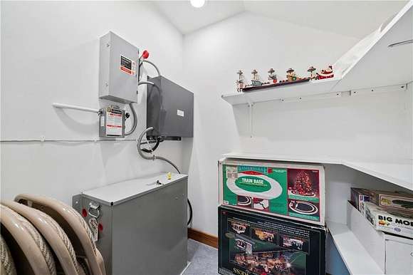 Within the four Bedrooms (two on the Main Level) and four Baths are surprises far beyond the average high-end home. A full-home generator, interior sprinkler system, foam insulation, motion-detector exterior lighting, 220v and CAT 5 wiring, four separate HVAC systems, 80-gallon water heater, 3-car Garage (one bay with 8' entry/ceiling for truck/trailer; garage floor sloped down at doorway for drainage)....A 36"x43" elevator to three levels (Main, Terrace, huge walk-through Attic) allows convenience and practicality. Two levels of state-of-the-art Workshops (each 575sf) leave plenty of room for other options.....Truly, no detail has been overlooked!