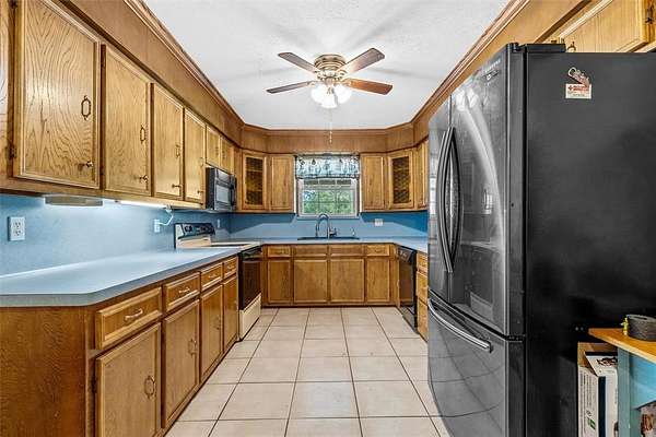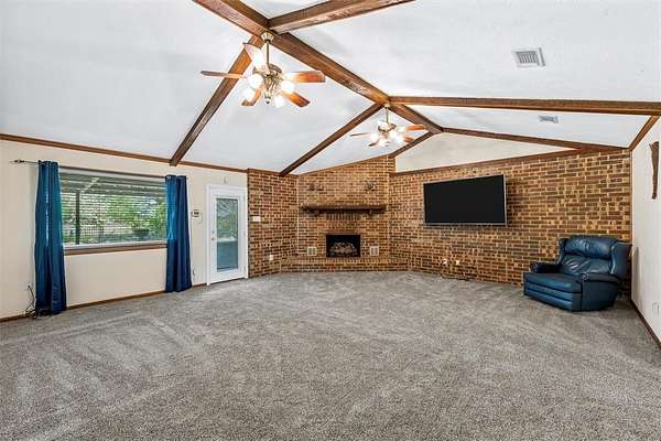 The ranch-style home features 3 spacious bedrooms, 2 full bathrooms, and a convenient 2-car garage. Constructed with enduring beauty in mind, the brick exterior and metal roof promise durability and a classic aesthetic. Inside, an inviting layout presents a seamless flow between living areas, perfect for both casual living and entertaining.