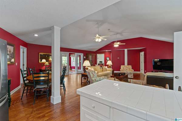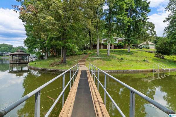 Lake Estate... brick home, flat lot, boat ramp, 250 ft of shoreline situated on 1.76 acres with year-round water! A long driveway leads to this well-maintained home featuring 3 bedrooms & 3 full baths. The spacious living room offers beautiful hardwood floors, brick fireplace, and leads to a sunroom overlooking the lake. The master is on the main along with another suite style bedroom on the upper level. The terrace level features more living space, a secondary kitchen, 1 bedroom, a full bath, and a garage area used as a rec room. The property boasts a detached boat garage, concrete seawall, floating dock with a slip, and a covered gazebo over water. This one is in a great location convenient to town and situated in a no-wake zone.