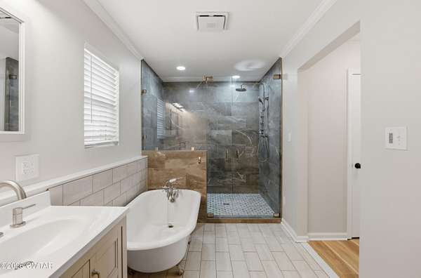 - Ceramic Tile Shower, Double Vanity, Eat-In Kitchen, Granite Counters, Kitchen Island, Soaking Tub, Walk-In Closet(s)
