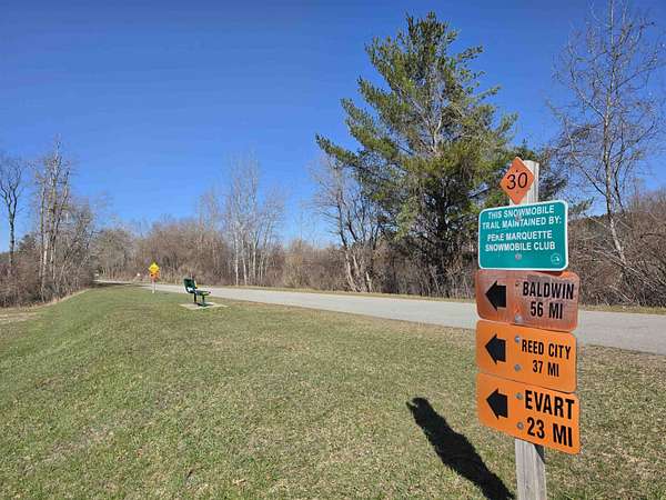Corner double lot in the Village of Farwell with trail access right out back. The Pere Marquette Rail Trail runs along the rear—ideal for biking, walking, or snowmobiling. The Mill Pond sits just across the road, offering a kayak launch, fishing access, accessible amenities, restrooms, pavilions, and a walking path around the water. Nearby state land adds even more room to roam. With in-town access to all this recreation, bring your ideas—build your home, a duplex, or explore options like short-term rentals or even bike/kayak rental potential (subject to village approval). The existing “gingerbread” garage adds charm and storage (previously had electric). Utilities available at the road: electric, natural gas, village water & sewer. Walk to the Saturday farmers market and enjoy small-town living with built-in outdoor appeal.