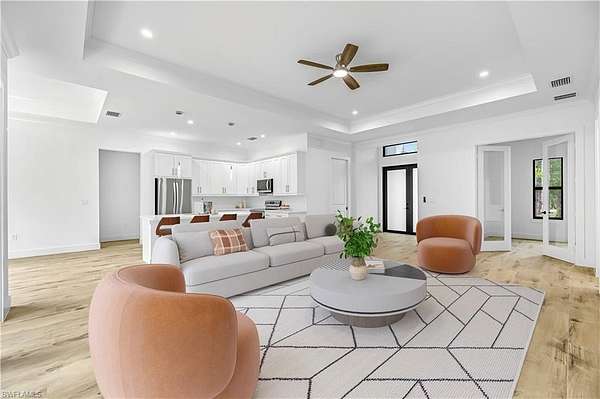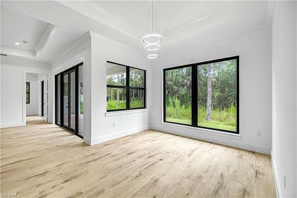 Amazing home built in a 2.73 acres rare 100% upland lot, in the area of Golden Gate Estates, features 3 bedrooms + Den, 2.5 bath, & 2 car garage! Living area of 1,900 sq.ft and a grand total of 2,627 sq.ft. Upgrades include wood plank porcelain tile throughout, crown molding, quartz countertops, stainless steel appliances, and solid wood cabinets! The living room and master suite boast tray ceilings. Master wing features an oversized bedroom, 2 spacious Closets, double vanity, and glass door enclosed shower. The outside of this home will not disappoint either with a Summer Kitchen and a beautiful landscape, auto sprinkler system, and a large lanai. Impact resistant windows/doors! *Photos are from a previous same model home.