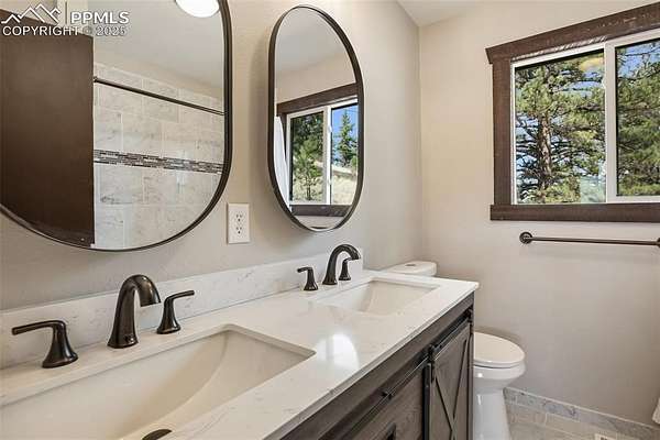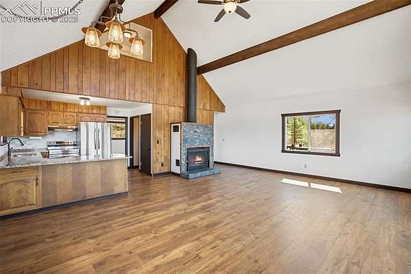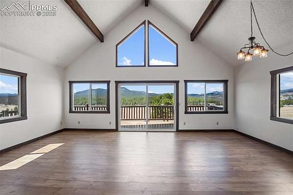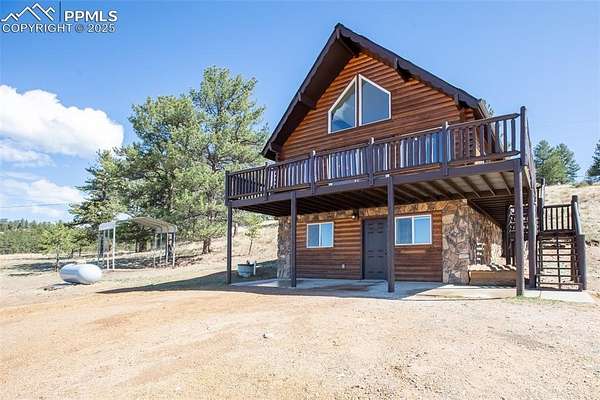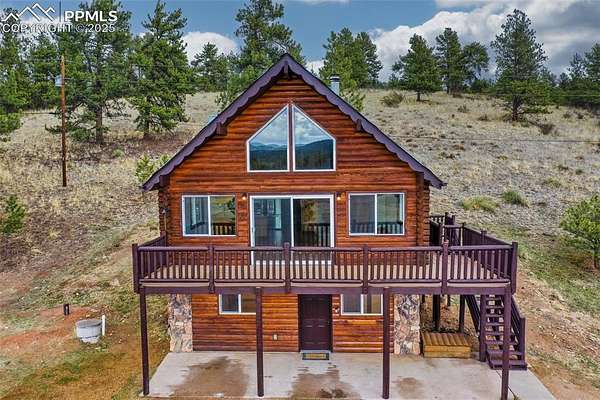 This cozy 3-bedroom, 3-bath home in Central Colorado masterfully blends modern upgrades with rustic charm, making it an ideal retreat for families, hobby farmers, hunters, fishermen, or anyone seeking serenity. Nestled near Lake George, Florissant, Divide, and Woodland Park on 35 Acres literally bordering the Pike National Forest, providing unencumbered back yard access to 1.1 million acres of recreational space and wildlife viewing, perfect for outdoor enthusiasts. The property features fenced pastures with frost-free hydrants, a 1.2 gpm well feeding an underground cistern and an updated septic system. A private lower-level suite with separate entry, new LVP flooring, plush carpet, and a stunning tiled shower with marble countertop is perfect for a mother-in-law or caretaker. The main floor, the heart of the home, boasts upgraded appliances, granite countertops, new flooring, new vinyl windows, and a large sliding glass door opening to a wrap-around deck with new composite decking-ideal for entertaining or enjoying Pikes Peak sunrises and hawk-filled skies. A wood fireplace with custom stone adds warmth, while the master bedroom, just off the kitchen, features a walk-in closet, new en suite bath, carpet, and windows. The upper level offers a quiet bedroom and bath, perfect as a meditative sanctuary, with new carpet and windows. Additional amenities include a new exterior electrical panel, gas furnace, private road, gravel pit, gravel trailer, dog run, and carport. This property is a rare opportunity to own a move-in-ready mountain hobby farm with room to grow and explore. What's holding you back?