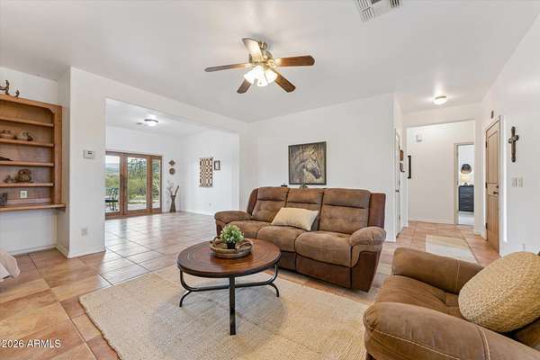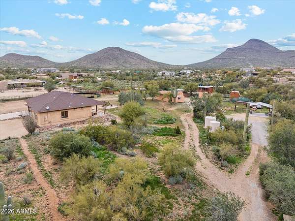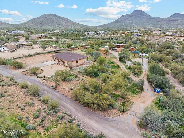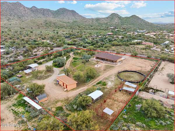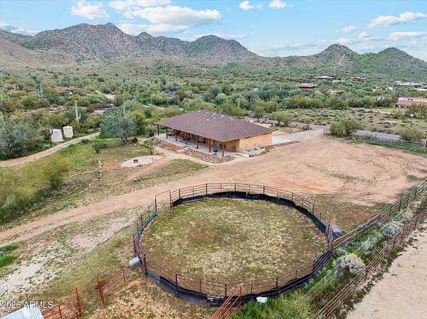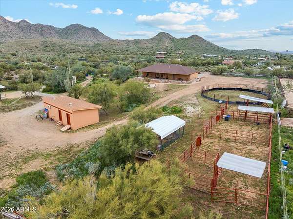Welcome to your new home! 2.51acre opportunity in Cave Creek. This property offers space, flexibility & lifestyle active buyers are seeking. This gem delivers a powerful combination of usable land, equestrianfriendly features, & beautiful mountain views. Go hiking, biking & trail riding all in a highly desirable North Valley location. Boasting 4bedrooms, 3baths & includes 2 primary bedroom's nestled on a large lot surrounded by natural desert landscape & nearby horse trail access. Includes multiple horse pens, 51' arena, tack building, 2 additional outbuildings already equipped with electricity & A/C giving buyers flexibility for workshops, storage, hobby spaces, or business use. The large outbuilding includes: generous storage areas & multiple use opportunity. year round utility. The back patio is pre-wired for a spa, offering an easy upgrade for outdoor living. For added convenience, the property includes shoreline power and a mini septic setup to fully support RV parking and RV living needs, a major value add for multi-use buyers, traveling professionals, or those needing guest accommodations. Located in the Cave Creek area, this property benefits from the region's reputation for large lots, equestrian activity, mountain views, and privacy while still being within reach of North Phoenix amenities.