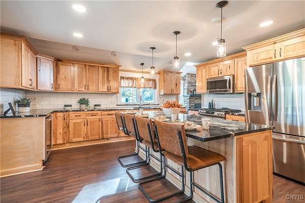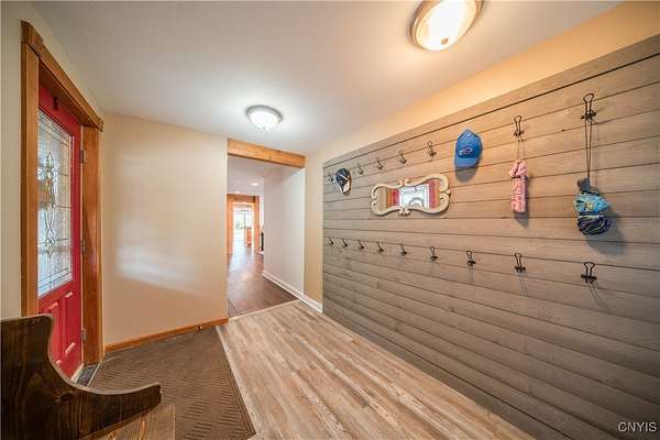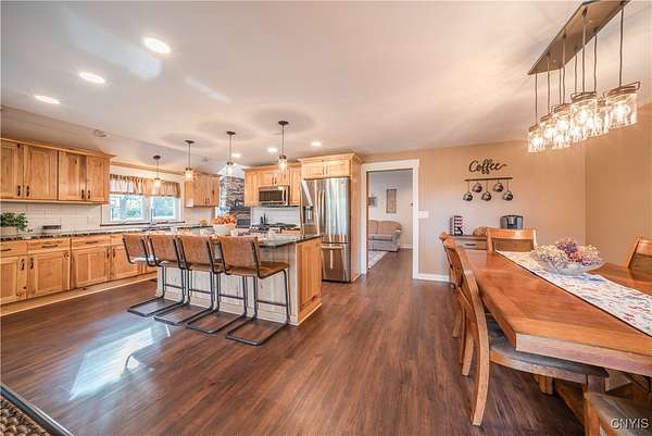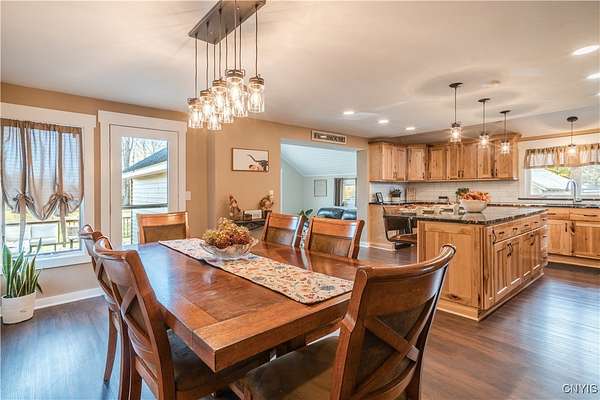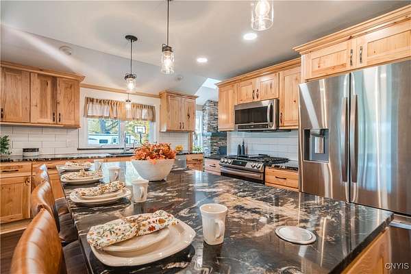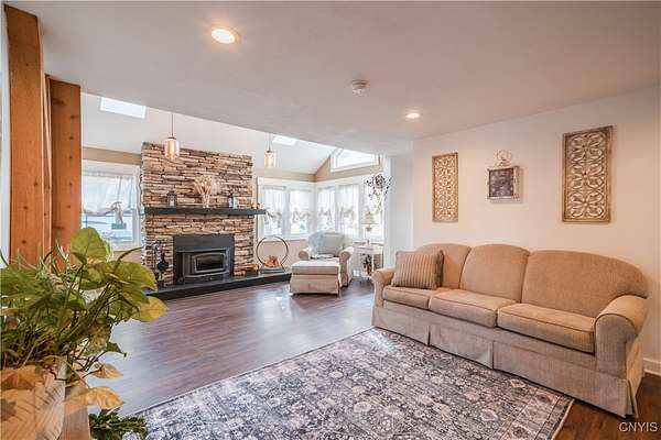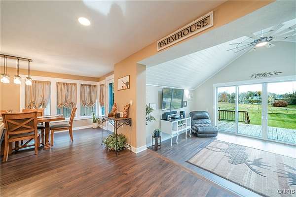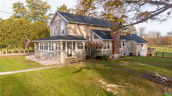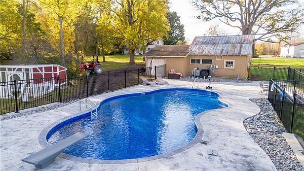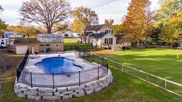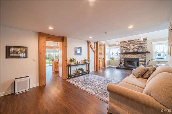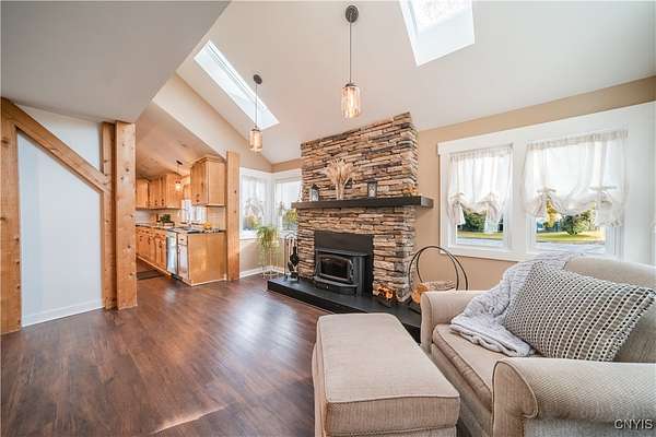 Step into Timeless Charm and Modern Luxury in this Beautifully Updated 4 Bedroom, 3 Bathroom Home situated on " 2.1 Acres " with "264 feet" of Private River Frontage!!! Built in 1850 and Thoughtfully Modernized, this One-Of-A-Kind property blends Rich Character with Today's Must Have Features!!! As you arrive, you're greeted by a brick paver driveway, a spacious 2.5-car garage, and both a covered front porch and a charming enclosed front porch-perfect for morning coffee or watching the seasons change. Inside, the entryway showcases a shiplap accent wall w/coat hooks, leading to a welcoming living area with LVP flooring and a stacked stone wood-burning fireplace. Comfort Windows throughout, ensure warmth and efficiency. The heart of the home is the custom Hickory kitchen, featuring a massive breakfast bar island, stainless steel appliances, modern lighting, Granite counters and a designated formal dining area-ideal for entertaining. Just off the kitchen, the family room boasts tongue-and-groove cathedral ceilings, LVP flooring, a gorgeous ceiling fan, and a large sliding glass door leading to a pressure-treated deck with panoramic views of the backyard. The backyard is a true retreat, featuring a 1-year-old custom in-ground pool with a stamp-crete patio, boulder landscaping, and retaining walls-perfect for summer enjoyment. The 1st Floor includes a flex bedroom or office + full bath w/clawfoot tub. Upstairs, you'll find a laundry nook, and two additional bedrooms. Incredible primary suite w/cathedral ceilings + flex space, dual closets (including a walk-in), and a luxurious bathroom with a waterfalled porcelain wall in the walk-in shower. The partially fenced backyard continues well beyond the deck and pool. Paradise awaits you beyond w/264 feet of riverfront, docks, and outbuildings-ideal for kayaking, fishing, or simply unwinding by the water. A barn with a heated mancave area completes this dream property. With a 4-year-old roof, thoughtful updates throughout, and a location that offers peace, privacy, and adventure, this is truly a rare find. Don't miss your opportunity to own a piece of history with all the modern comforts you've been searching for.