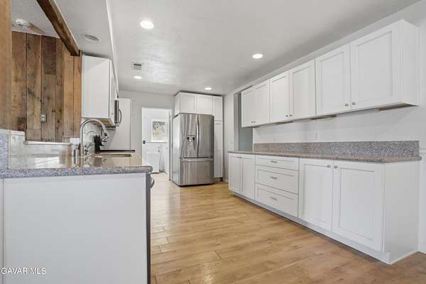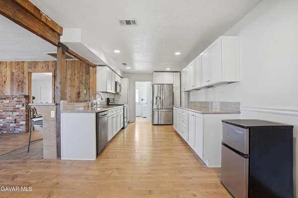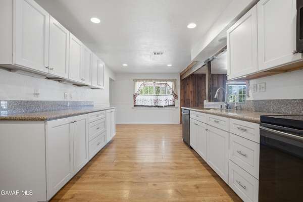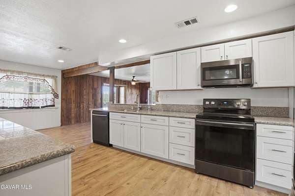 Imagine living in your own private, gated Oasis, among the peaceful, rolling hills of Leona Valley. Over 2.34 acres of prime land, providing you with endless views of sunrises and sunsets. Nearby trails are great for hiking, biking or horseback riding. This is horse country and this property includes a barn with 2 stalls, an outdoor paddock and privacy fencing around the perimeter. The home is a sprawling single-story ranch with 4 bedrooms and 2 baths. Charm is built into this home, starting with an illuminated, wrap-around porch, offering you endless views of the countryside, perfect for year-round family gatherings and barbecues. The solid-wood front door is ornately carved and has decorative glass. The minute you step into the house you notice the elegant hardwood floors and dramatic, beamed ceilings. Living room has a real stone fireplace. The den has a brick fireplace with pot belly stove for cozy nights and charming atmosphere. French doors that go out enormous wrap-around porch.Elegant cooks kitchen, laminate hardwood floors complete with stainless steel dishwasher, modern soft-close kitchen cabinets and granite counter tops. Both bathrooms have glass shower doors and one has double sinks. Bedrooms are carpeted for your comfort. For a taste of the West in a charming community setting this may be the property for you.